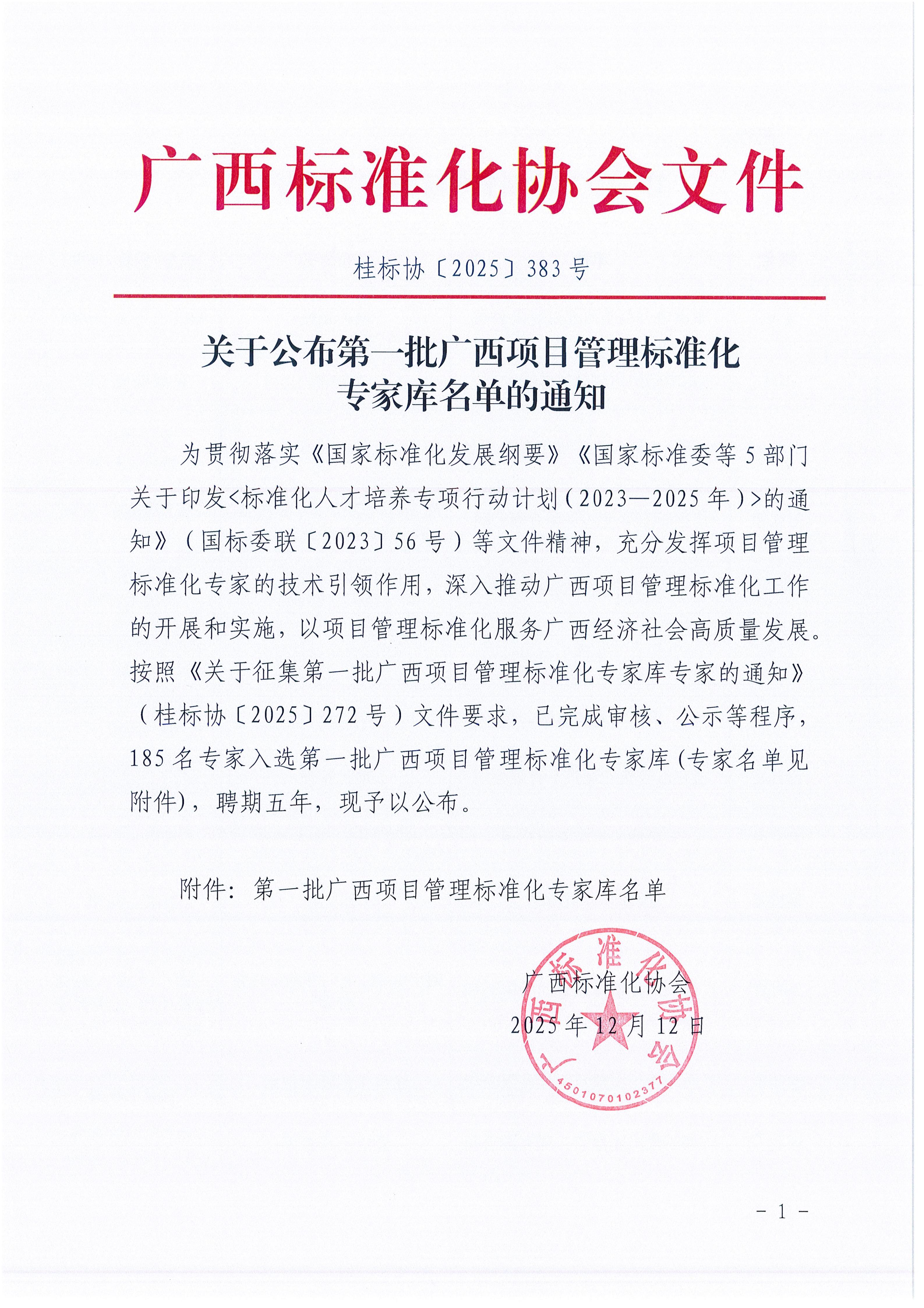 关于公布第一批广西项目管理标准化专家库名单的通知.pdf