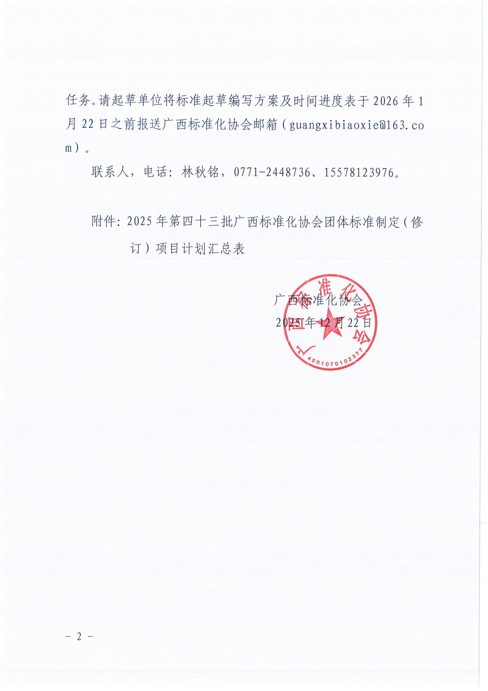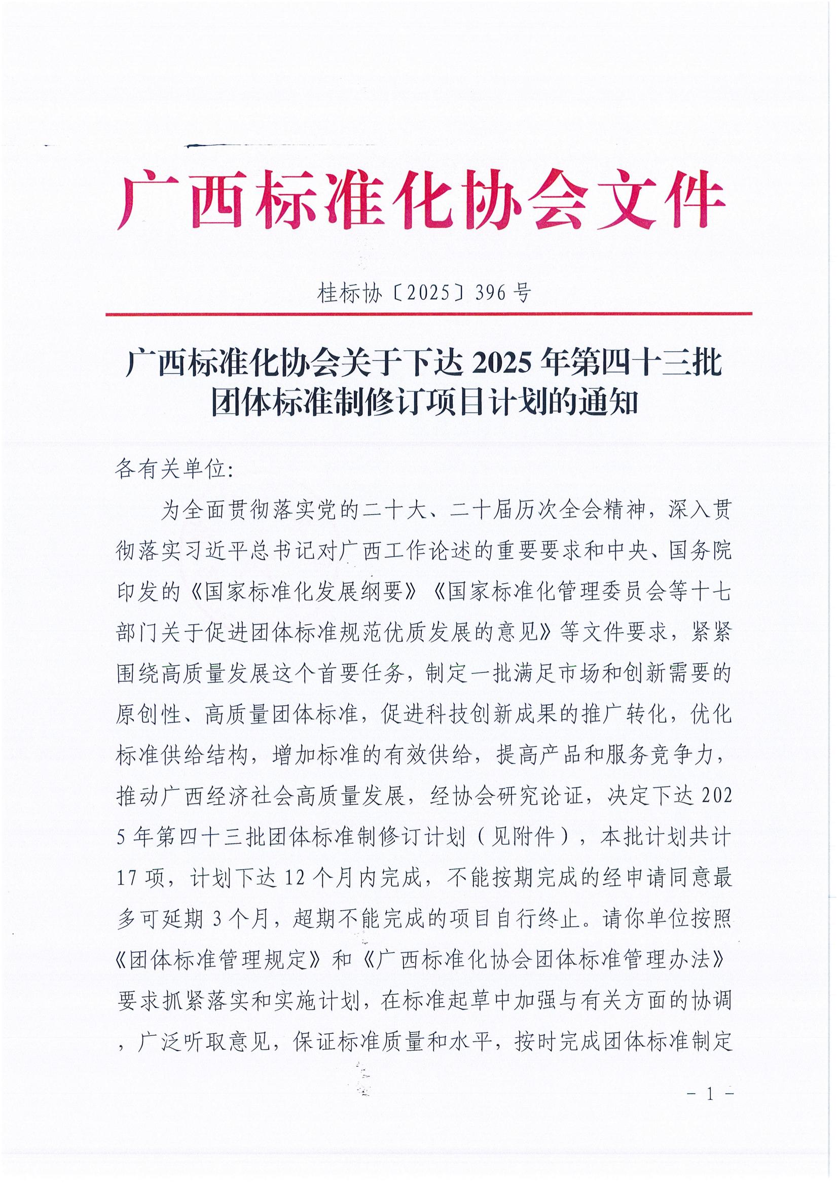 广西标准化协会关于下达2025年第四十三批团体标准制修订项目计划的通知