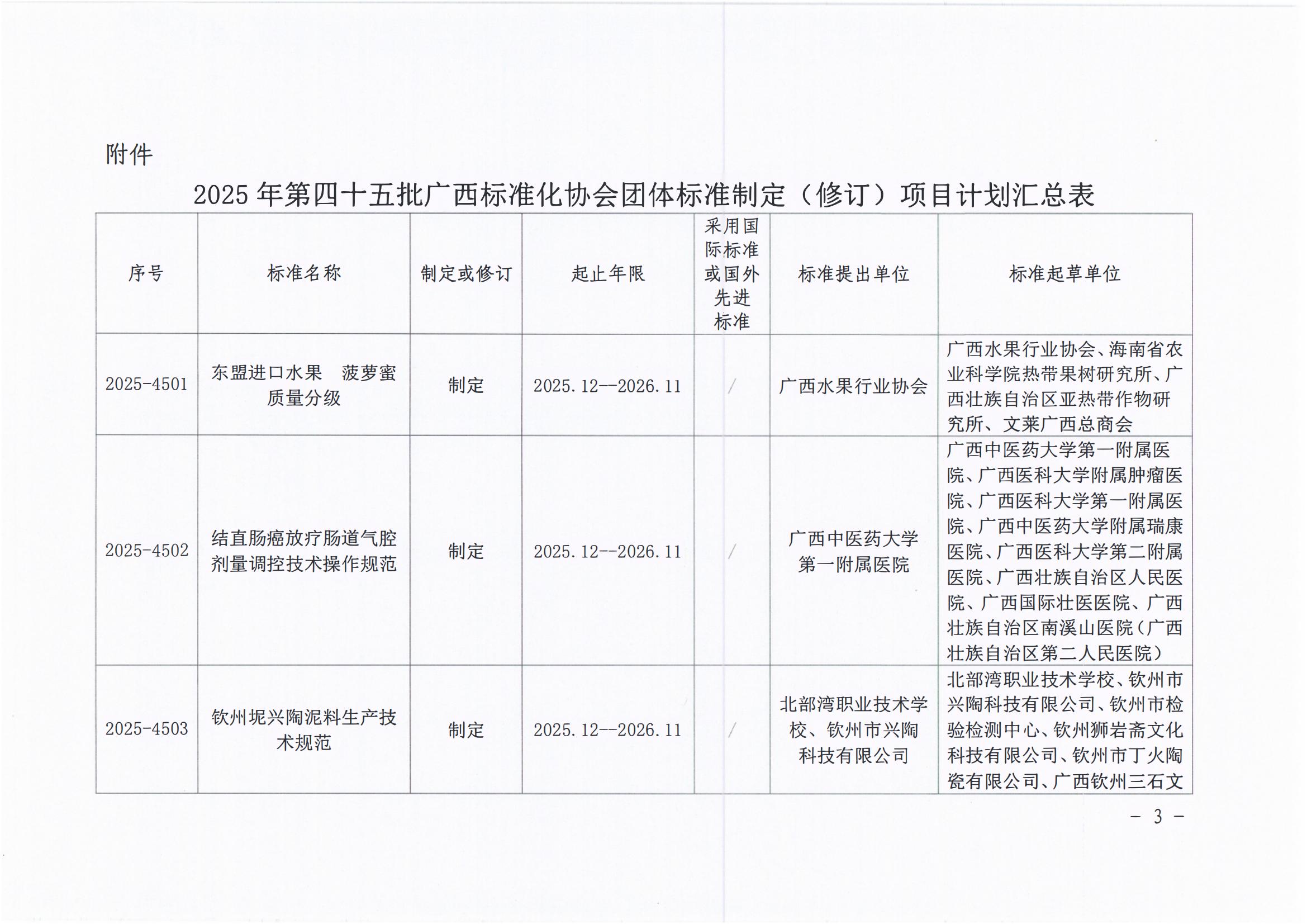 广西标准化协会关于下达2025年第四十五批团体标准制修订项目计划的通知