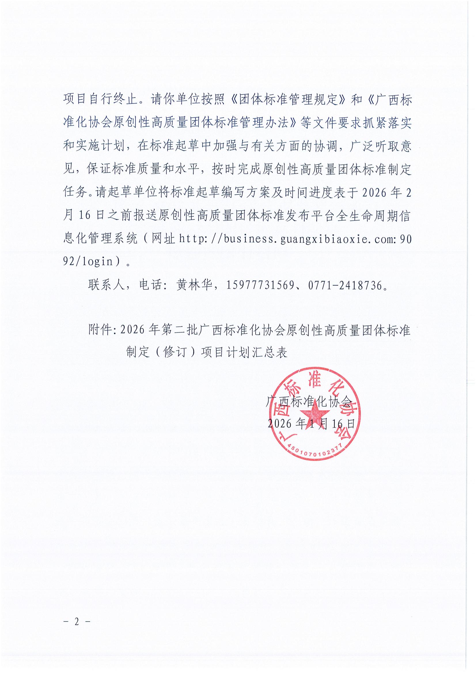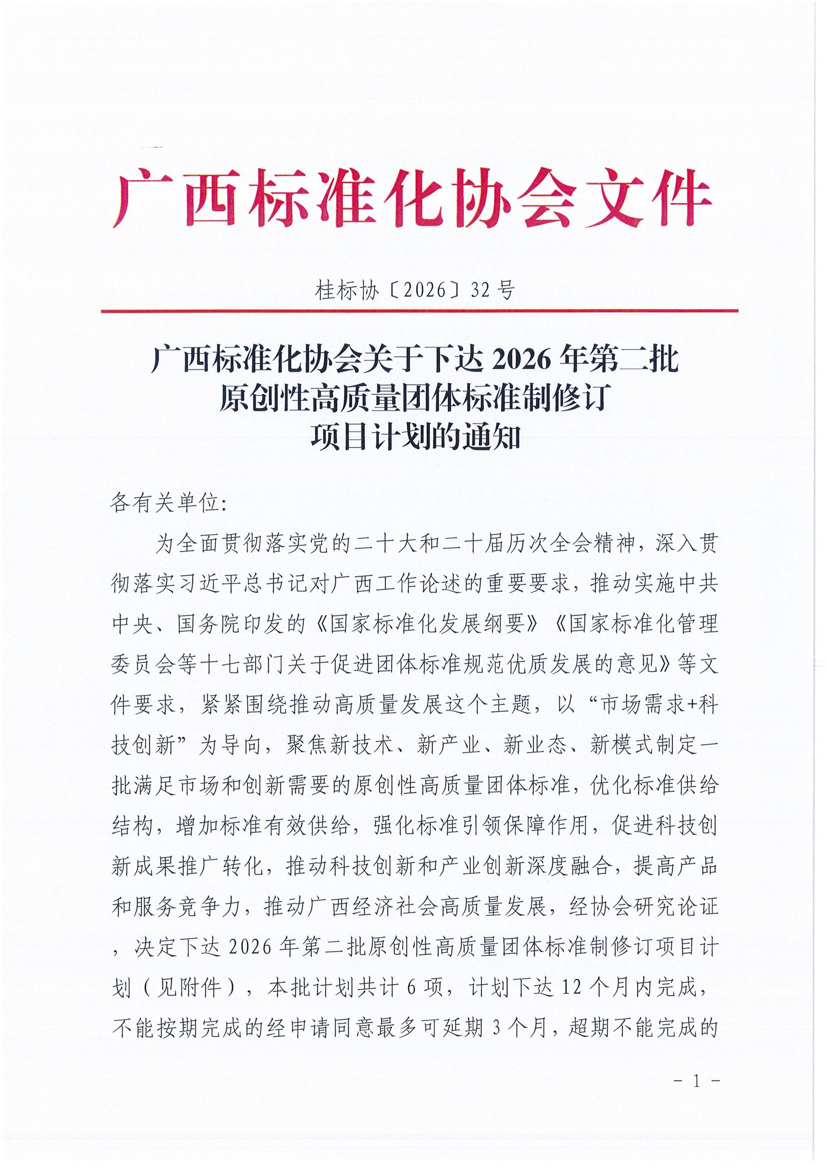 广西标准化协会关于下达2026年第二批团体标准制修订项目计划的通知