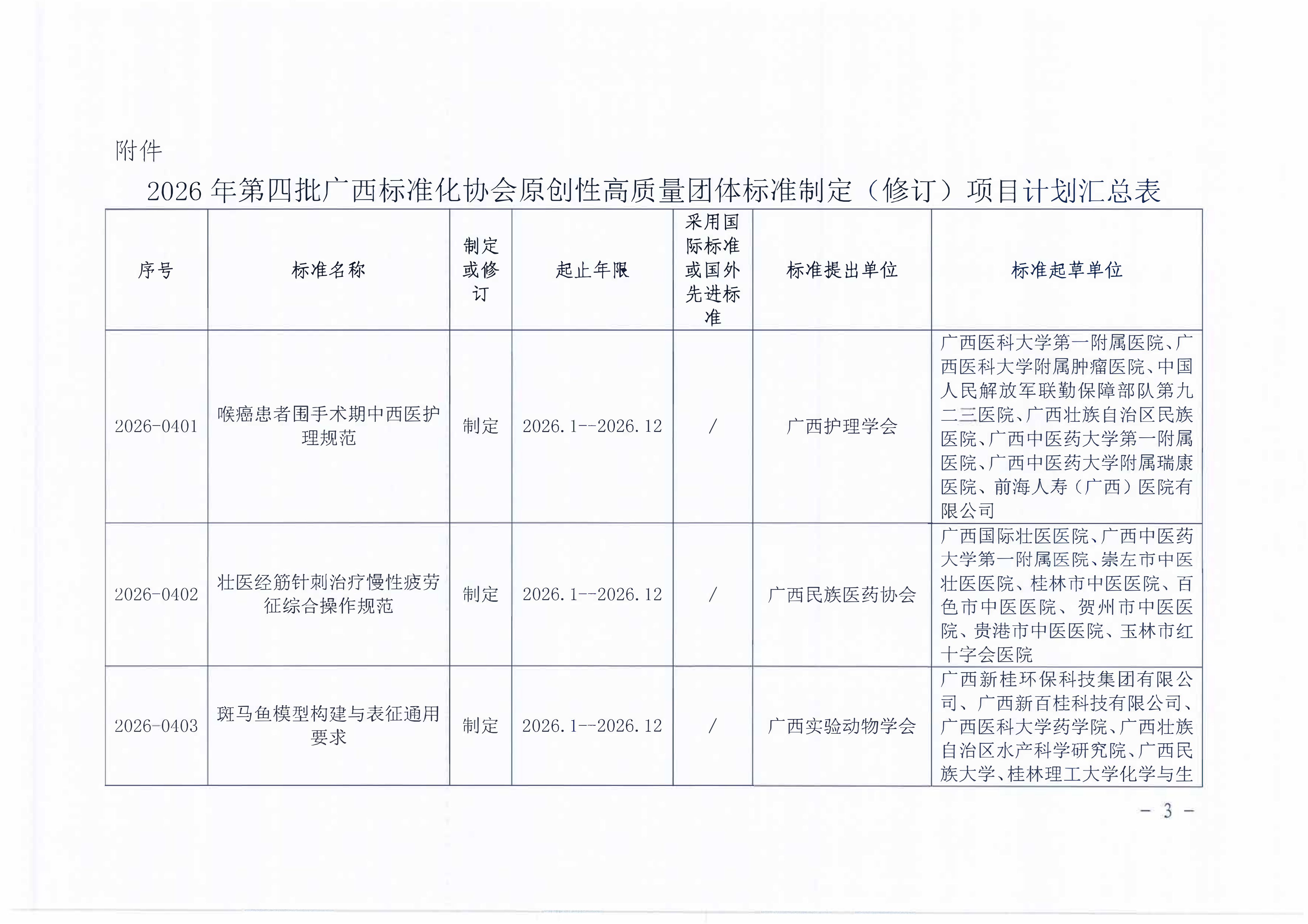 广西标准化协会关于下达2026年第三批团体标准制修订项目计划的通知