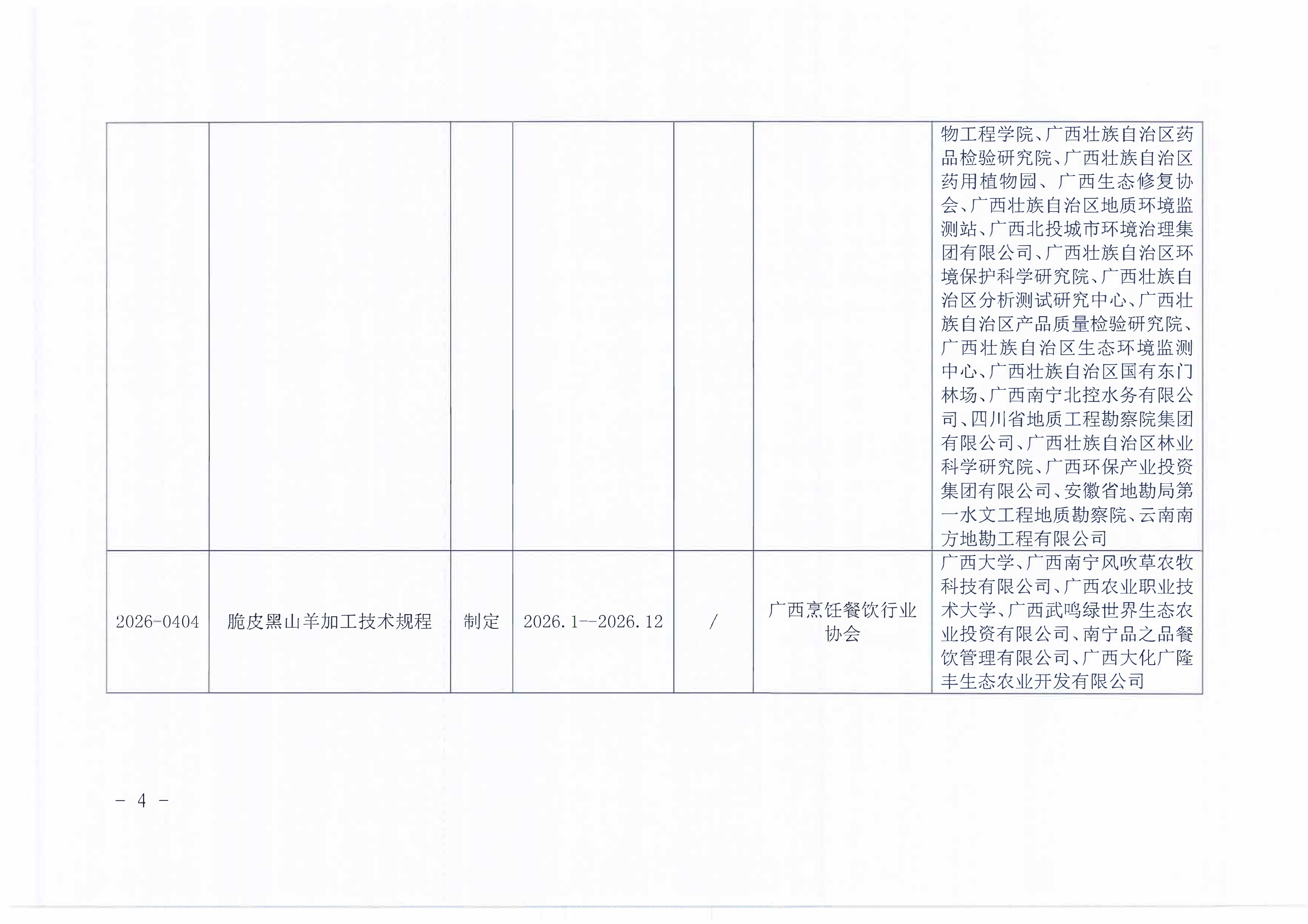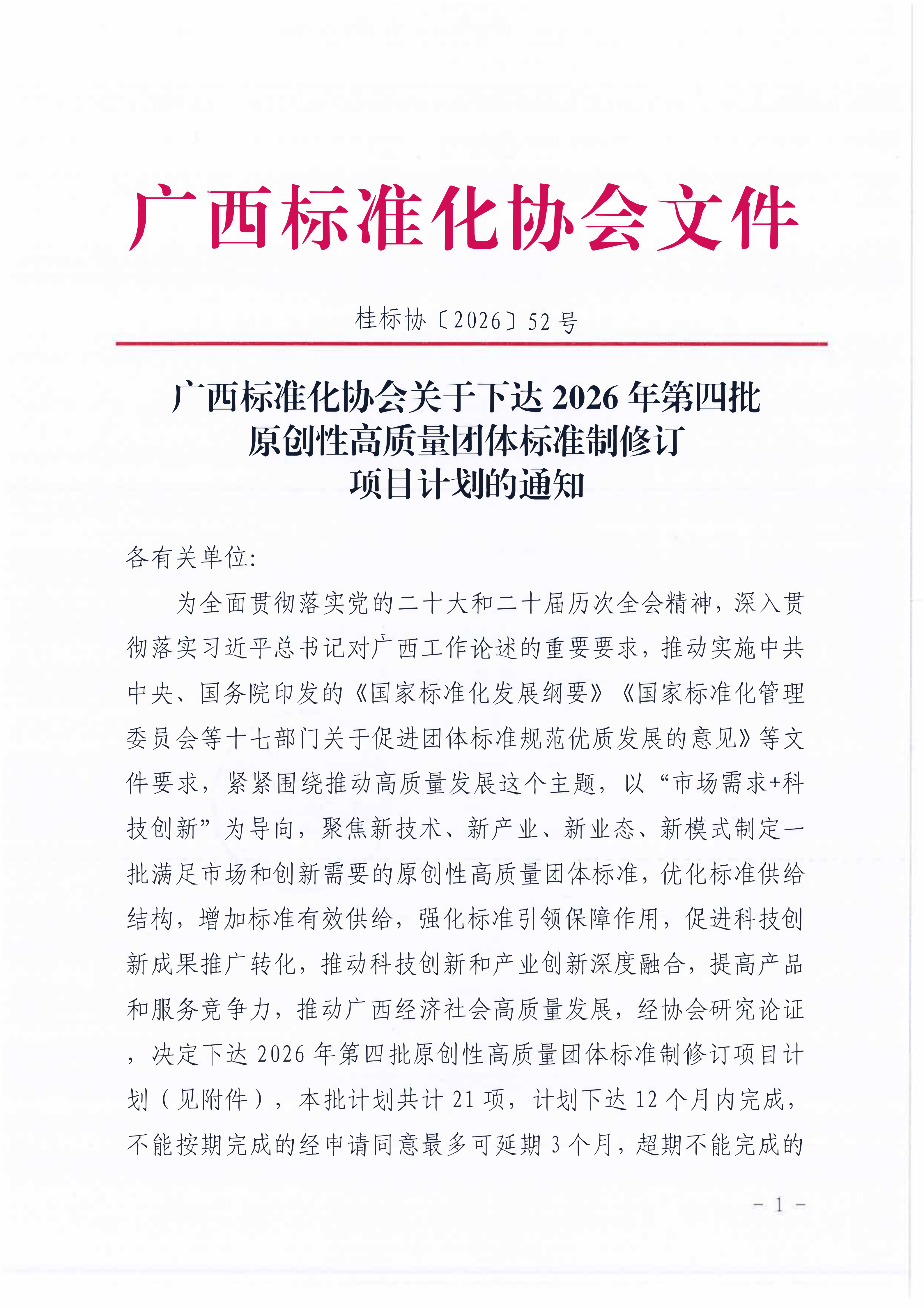 广西标准化协会关于下达2026年第四批团体标准制修订项目计划的通知