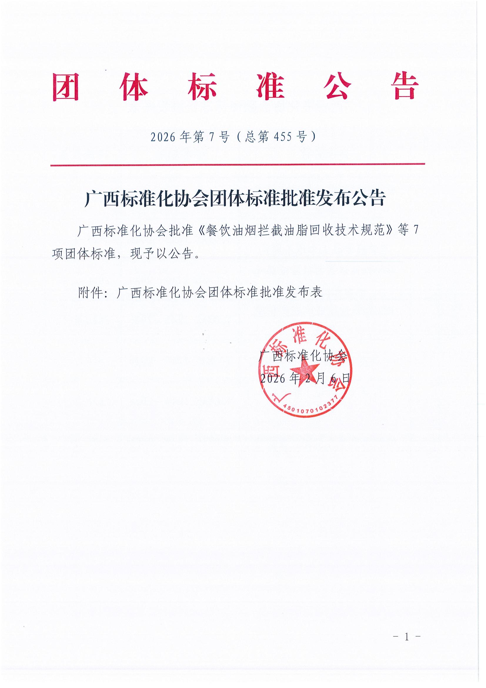 广西标准化协会团体标准批准发布公告《2026年第7号(总第452号)》