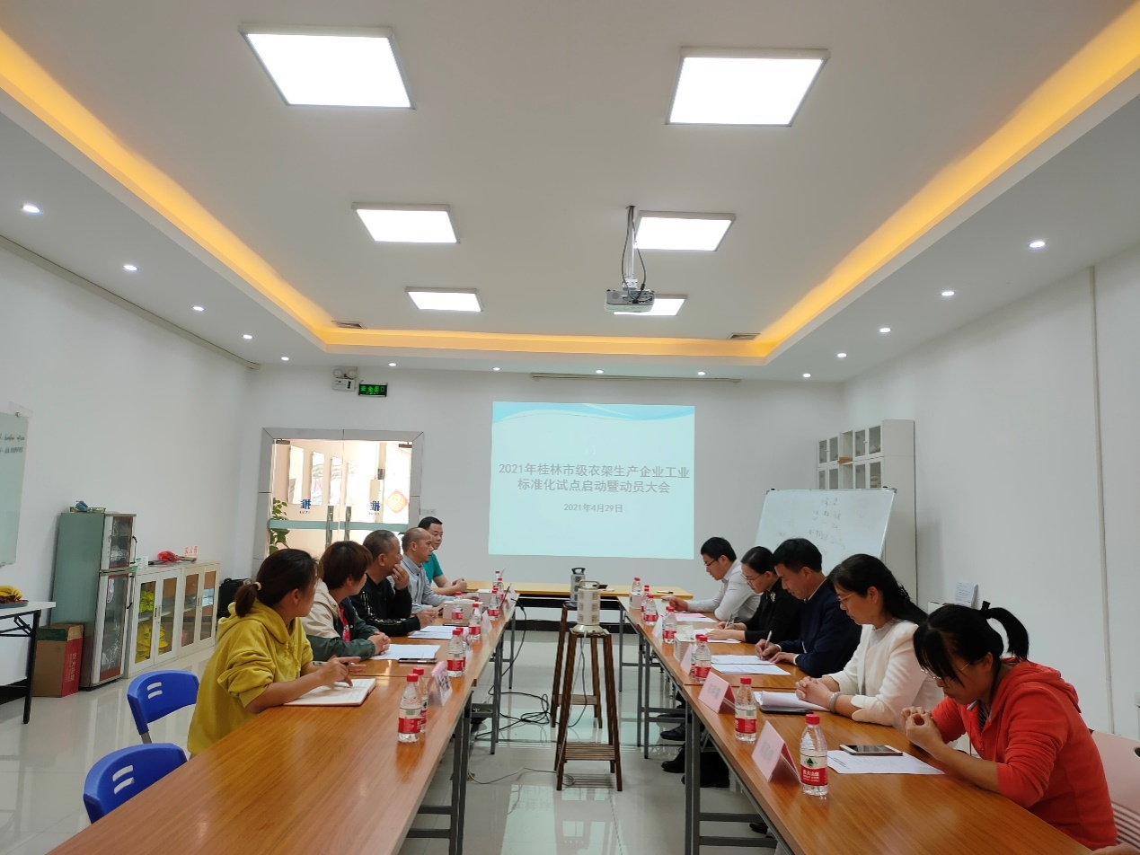 4月29日,为全面部署桂林市衣架生产企业标准化良好行为试点创建工作,广西桂林华海家居用品有限公司组织召开2021年桂林市衣架生产企业标准化良好行为试点启动暨动员大会。桂林市市场监管局标准化科唐慧副科长、蒋晓龙主任科员、荔浦市市场监管局质量综合监督管理股股长陈明霞、广西协致标准化认证咨询服务有限责任公司总经理黄林华、广西桂林华海家居用品有限公司董事长助理莫祖存、总经理助理韦晓康以及各部门主管参加会议。