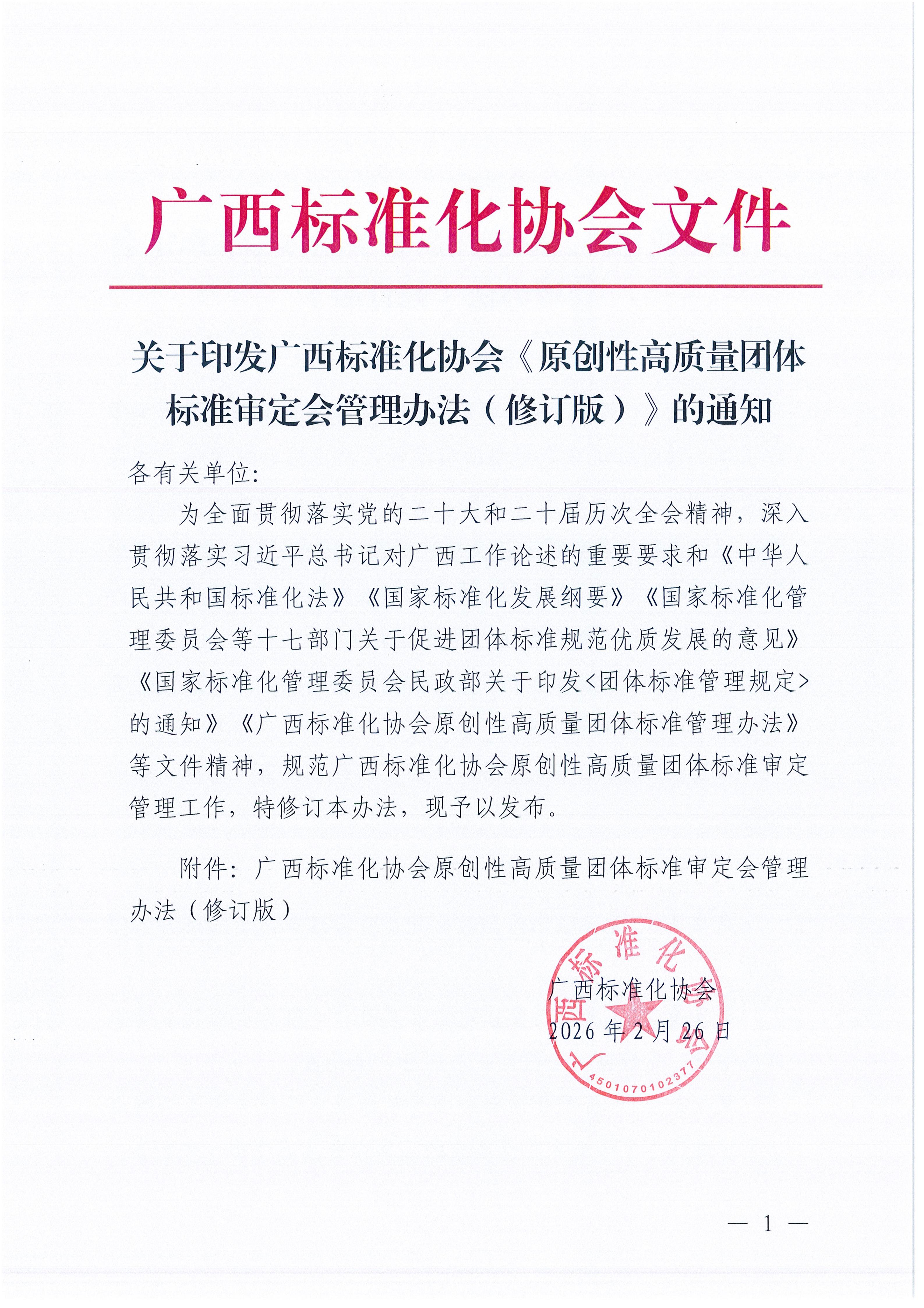 关于印发《广西标准化协会团体标准审定会管理办法(修订版)》的通知