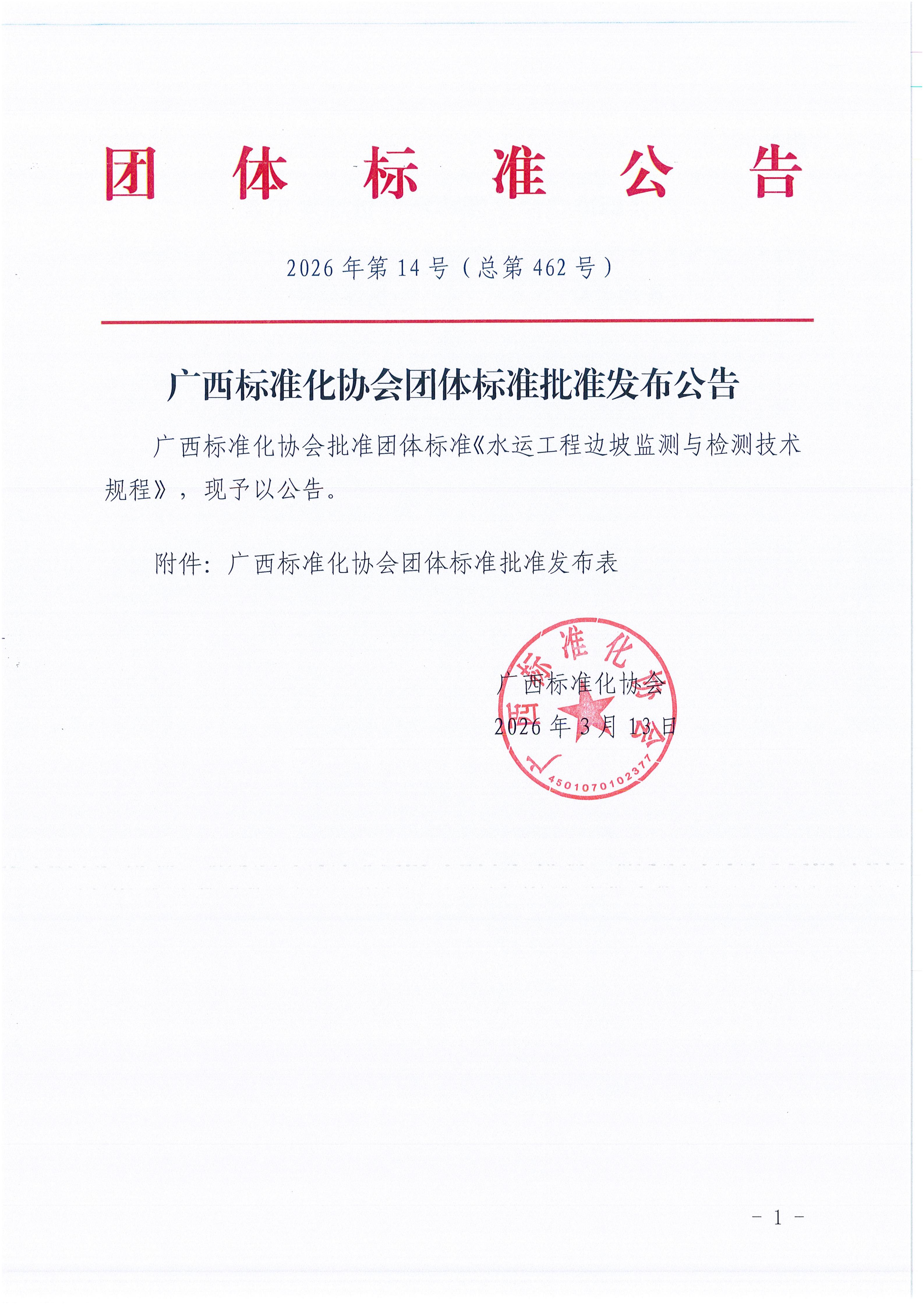 广西标准化协会团体标准批准发布公告《2026年第14号(总第462号)》