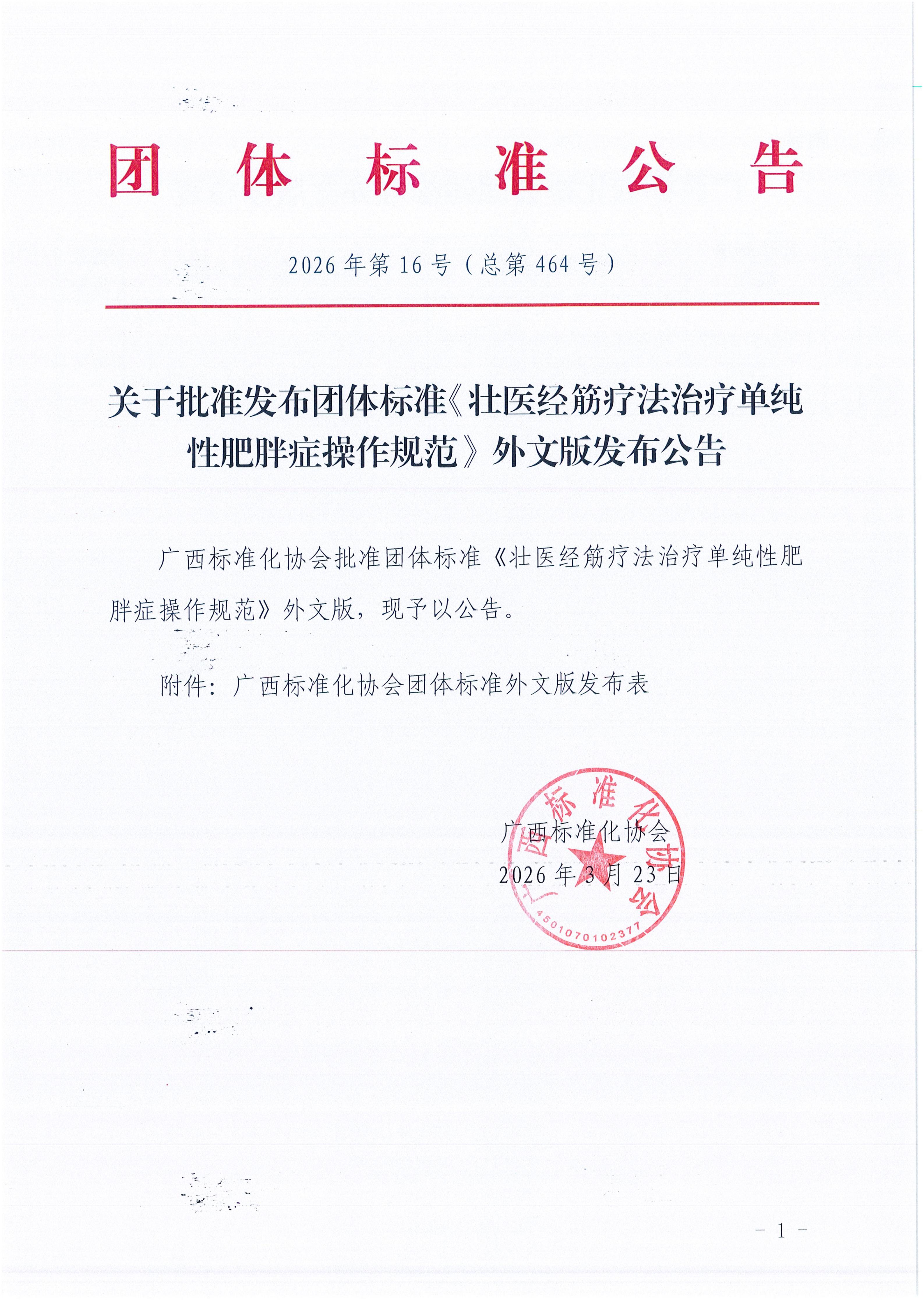 广西标准化协会团体标准批准发布公告《2026年第16号(总第464号)》