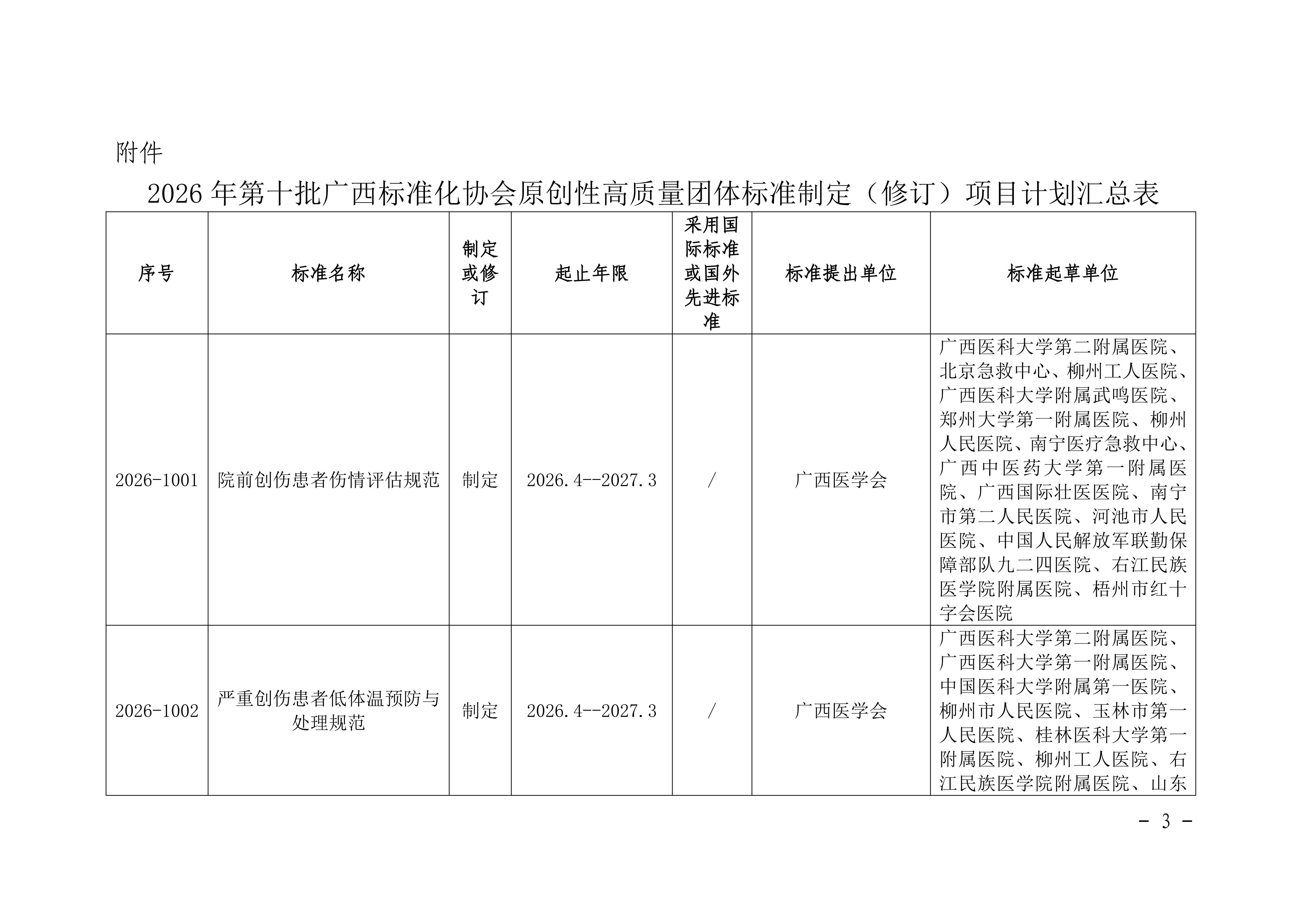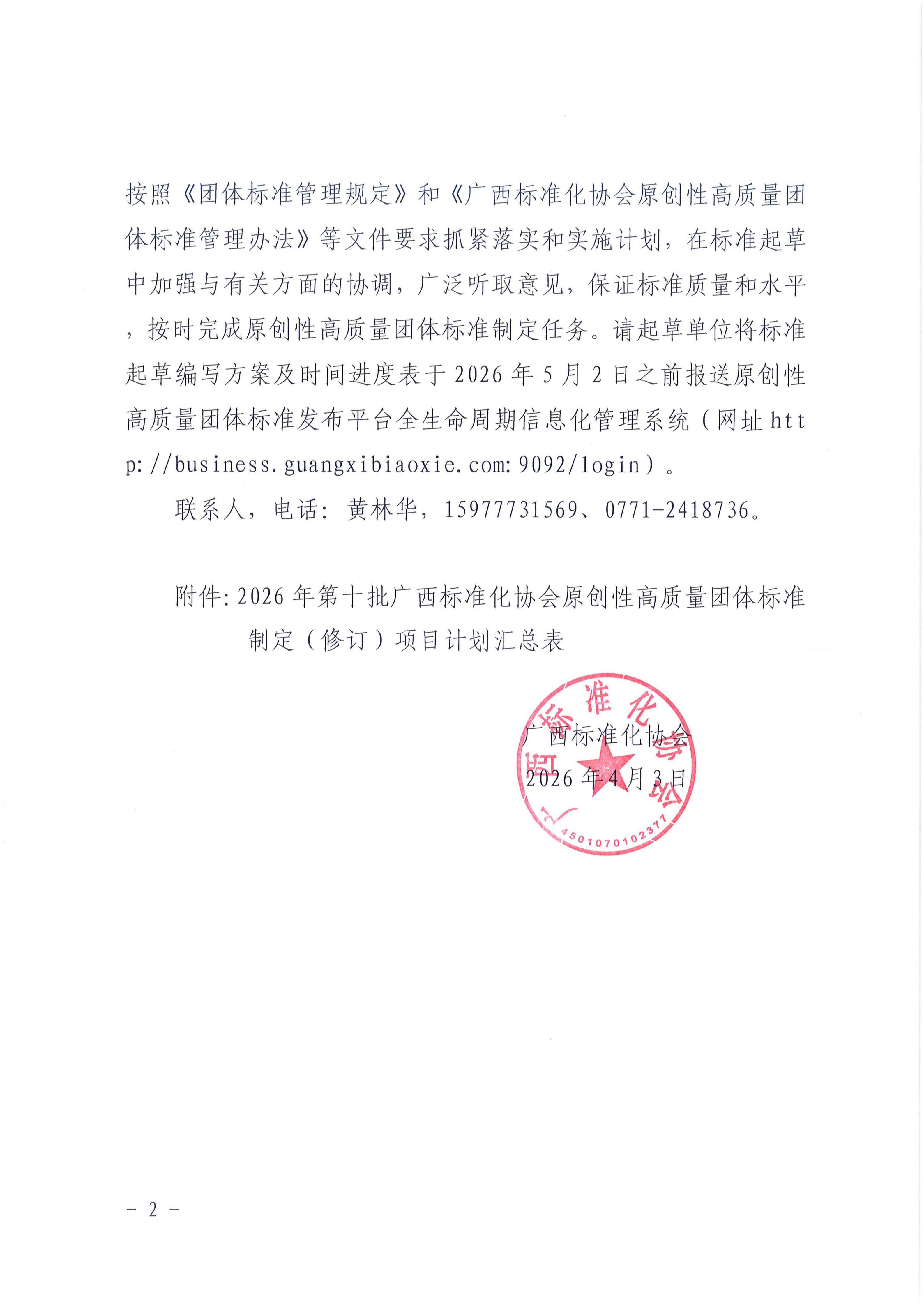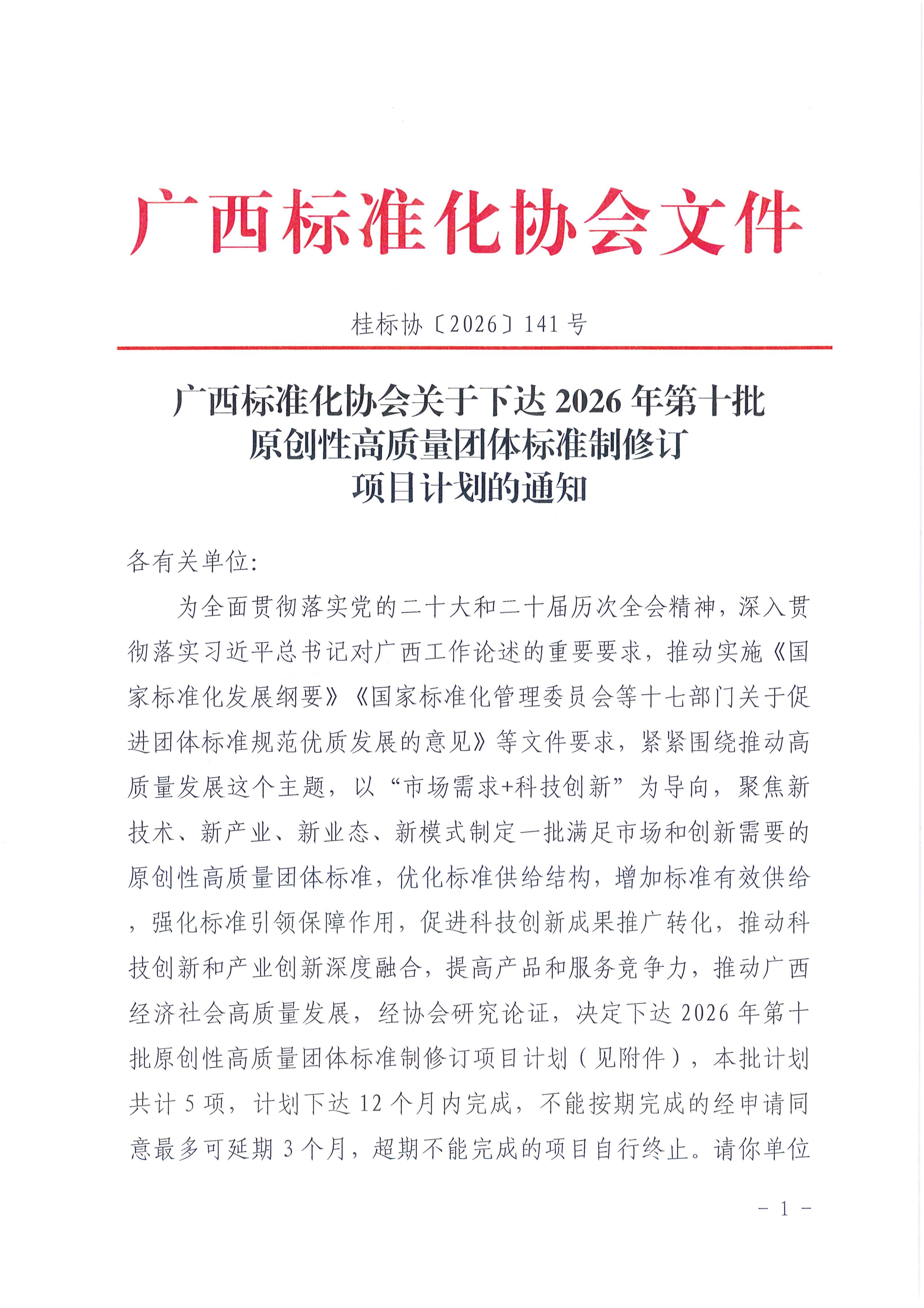 广西标准化协会关于下达2026年第十批团体标准制修订项目计划的通知