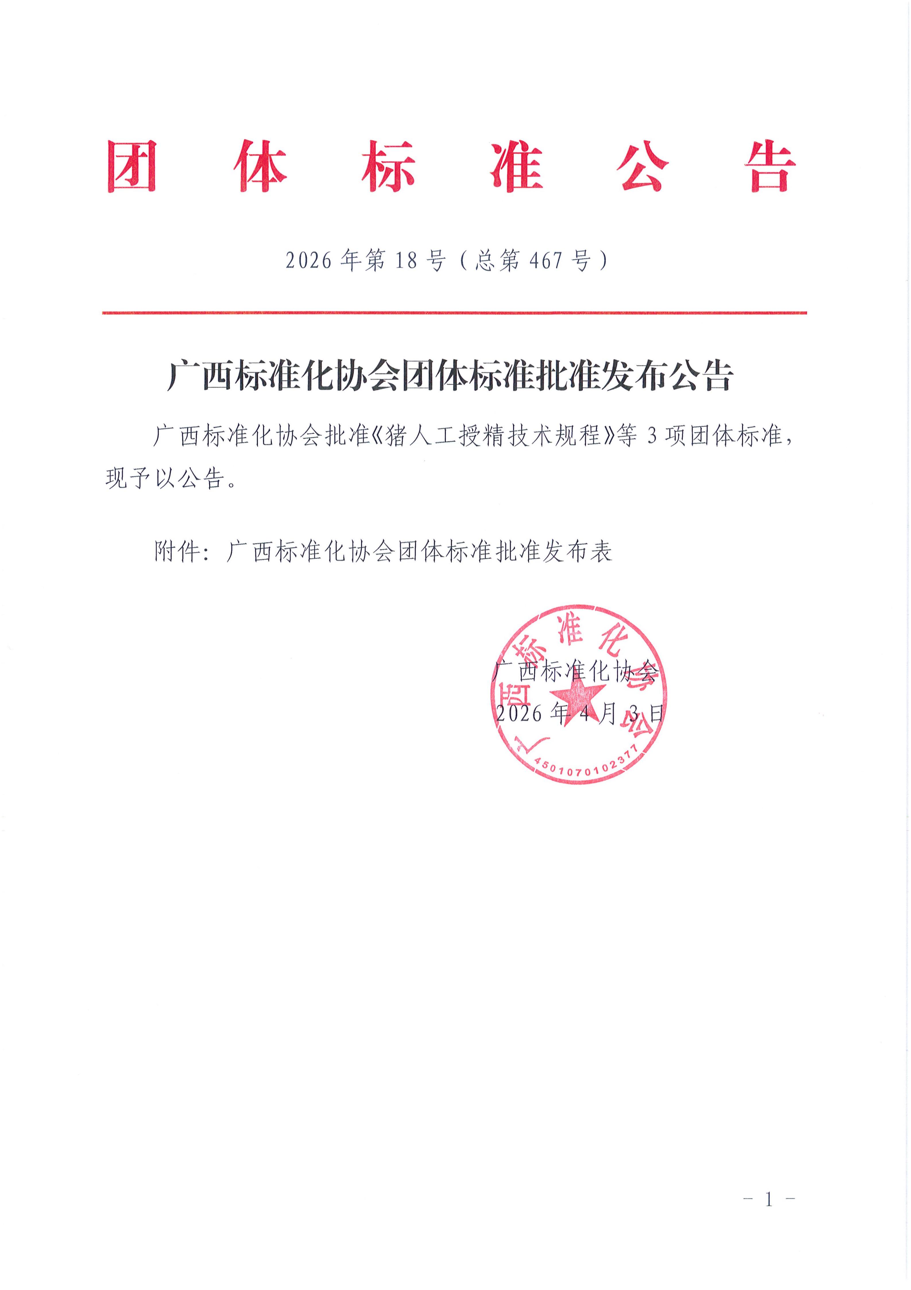 广西标准化协会团体标准批准发布公告《2026年第18号(总第467号)》