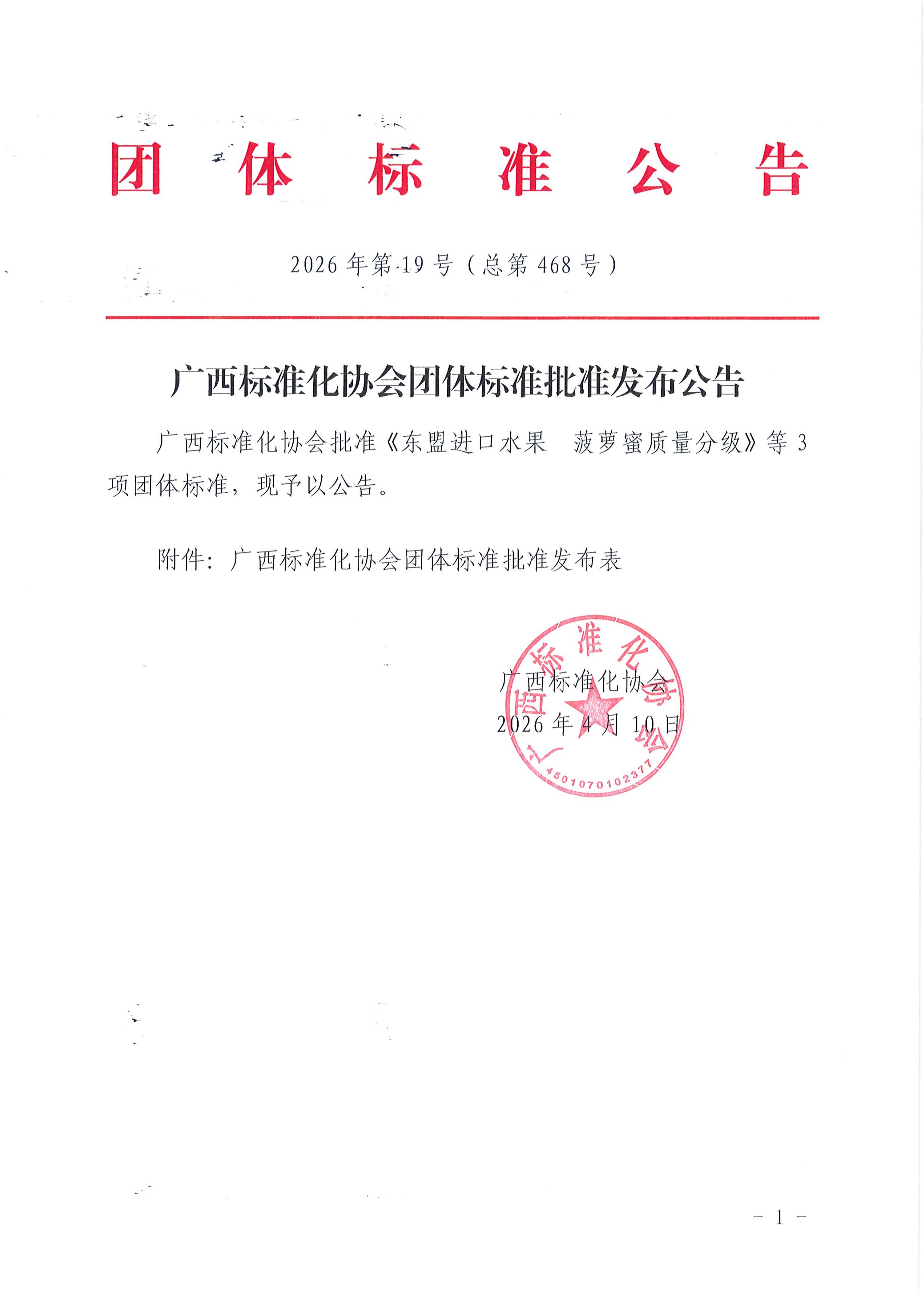 广西标准化协会团体标准批准发布公告《2026年第19号(总第468号)》