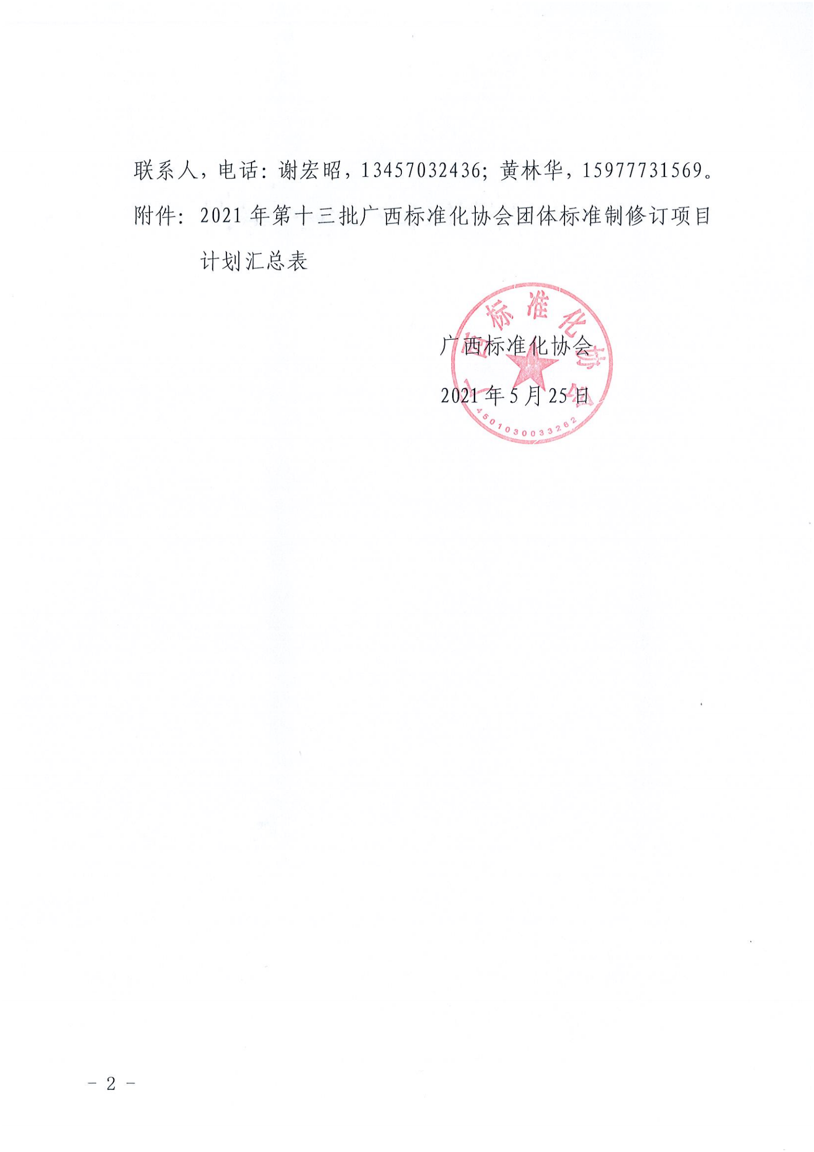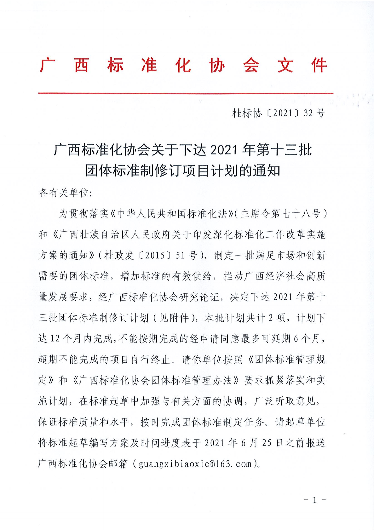 广西标准化协会关于下达2021年第十三批团体标准制定项目计划的通知