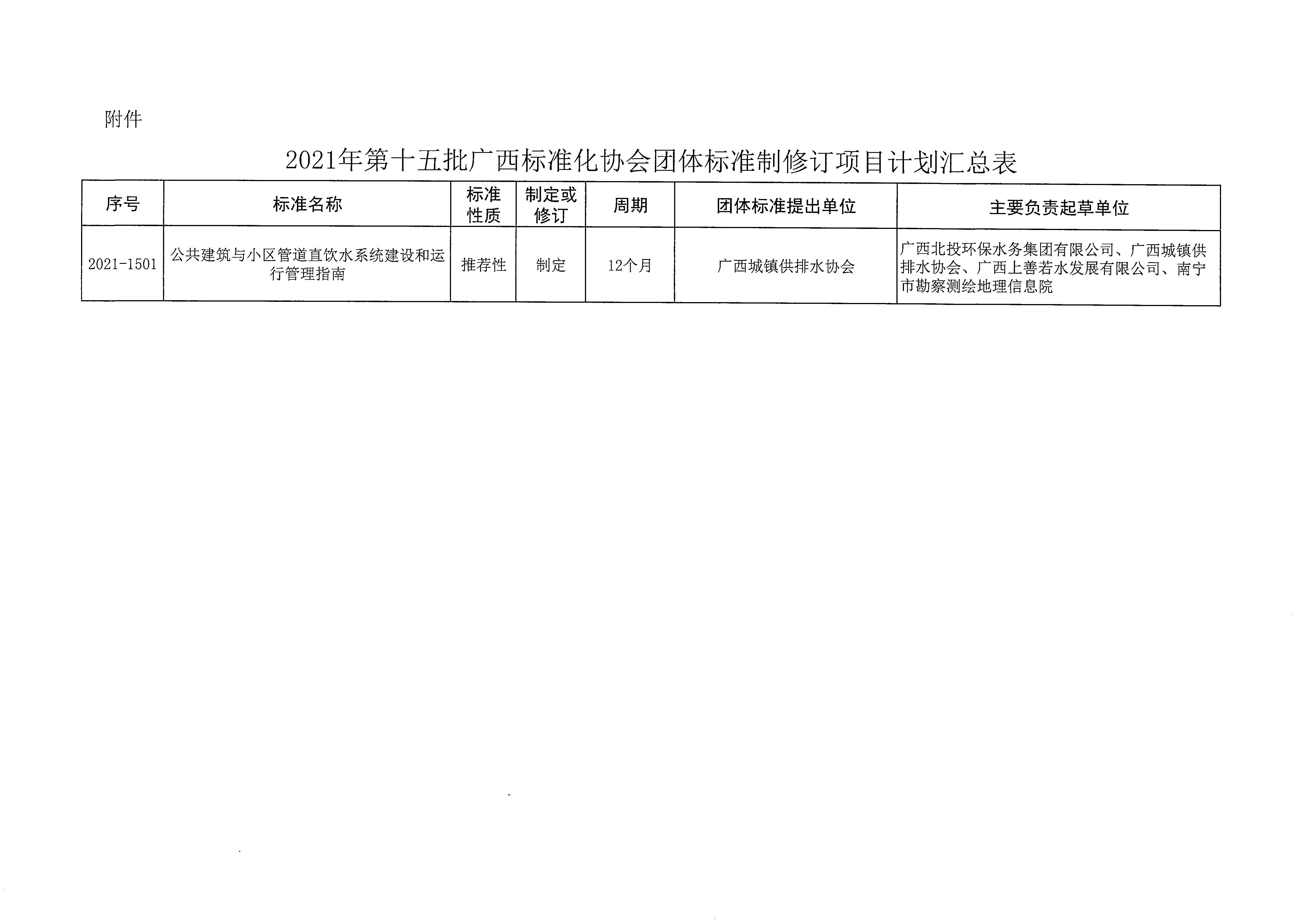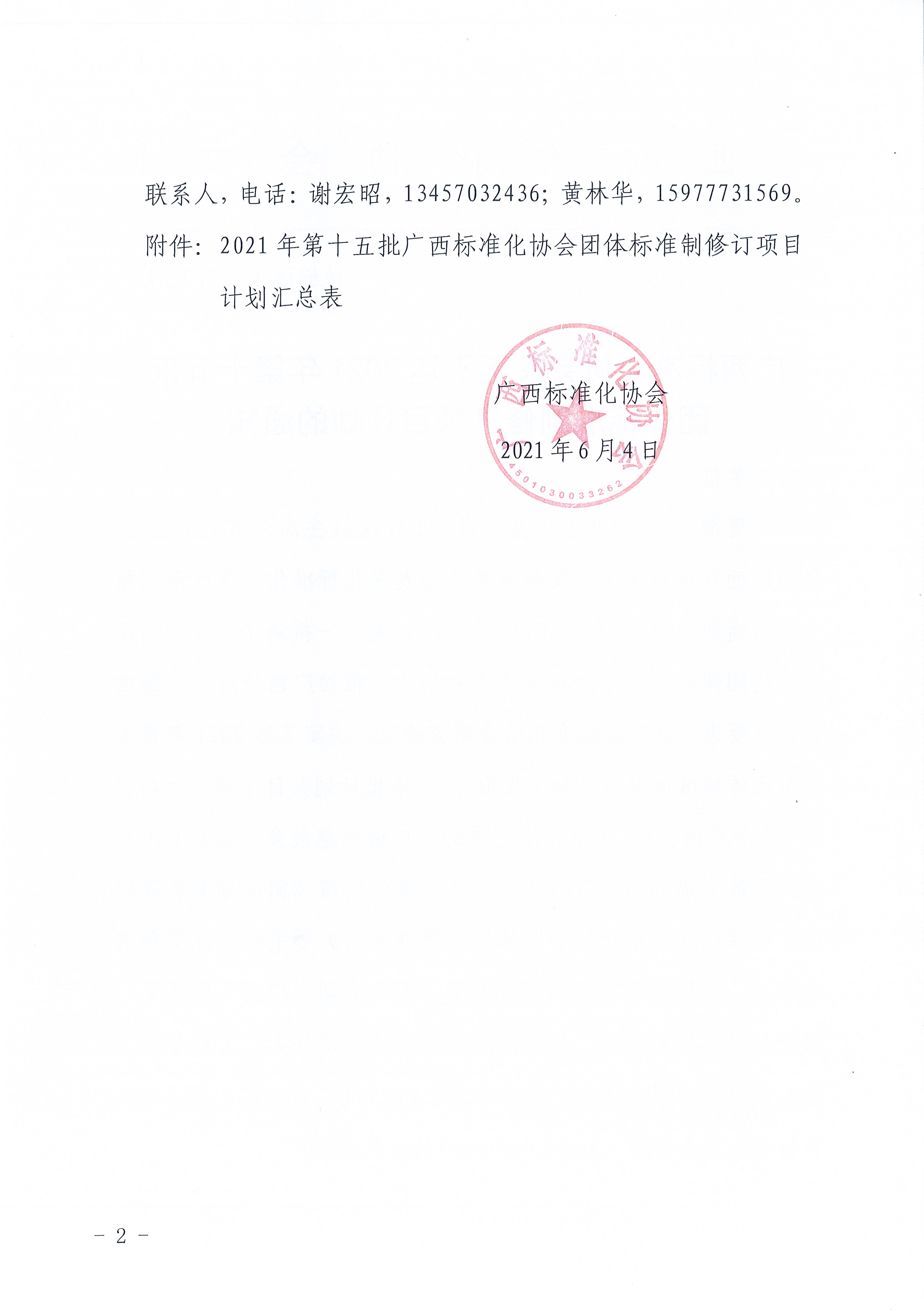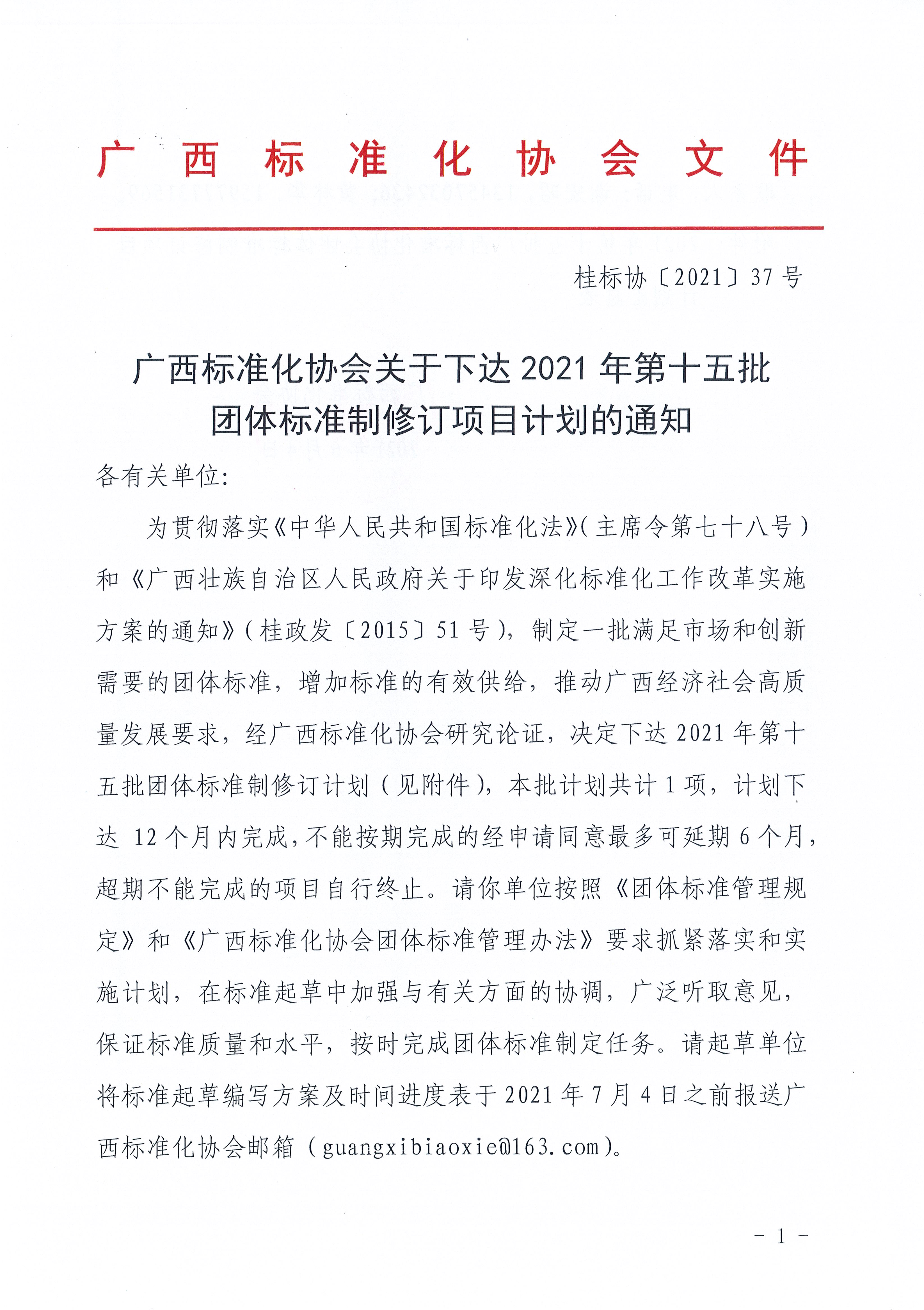 广西标准化协会关于下达2021年第十五批团体标准制定项目计划的通知
