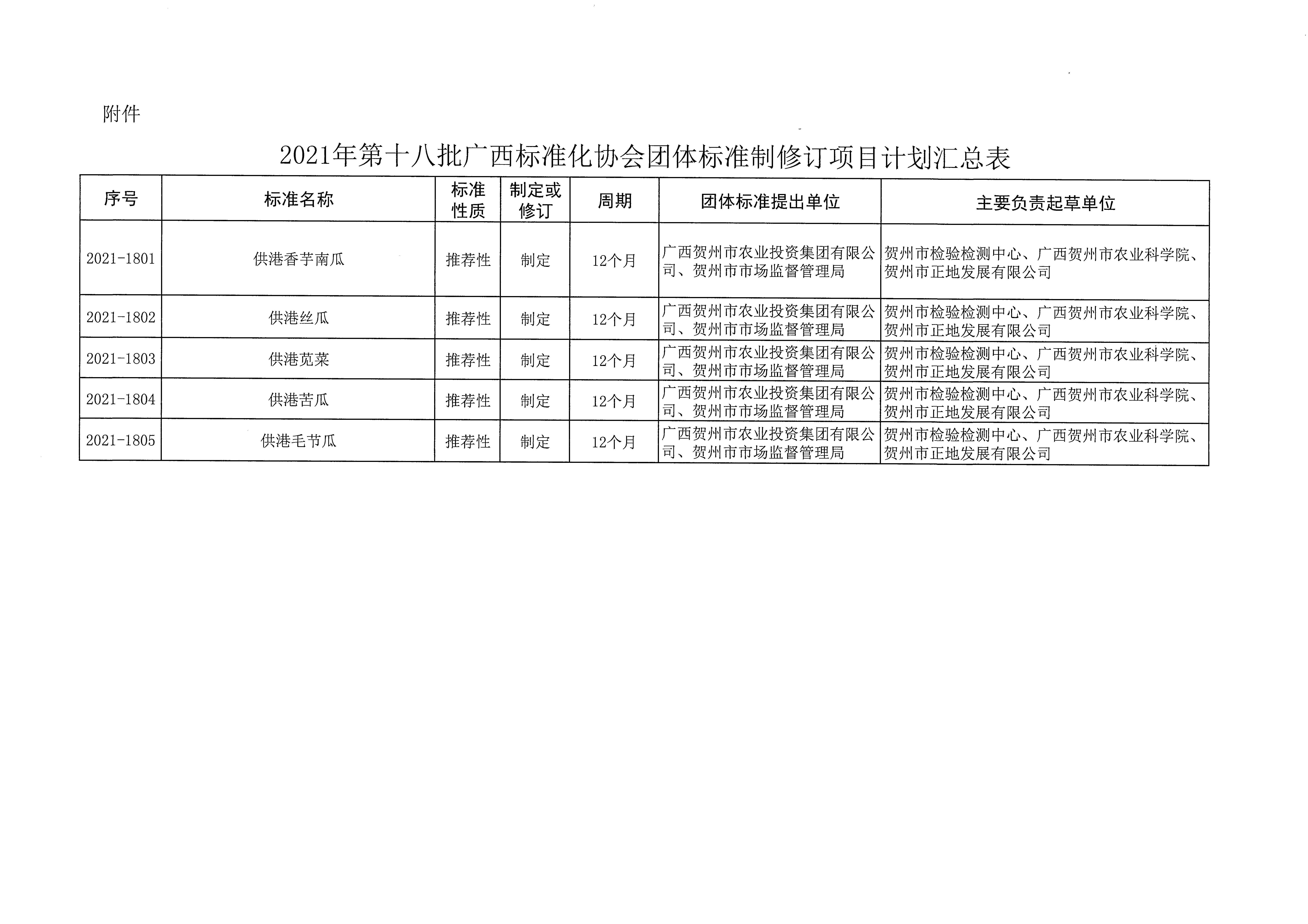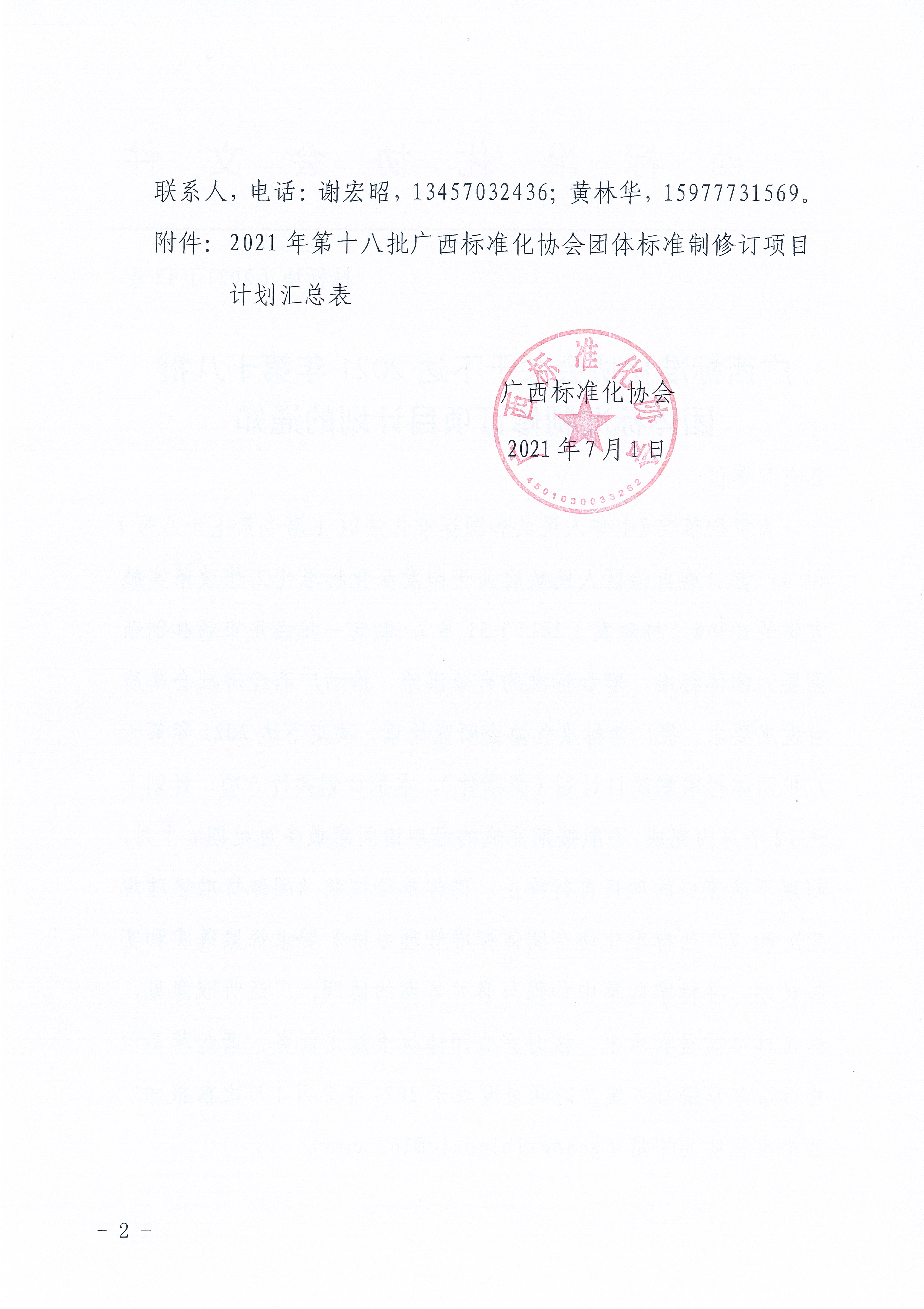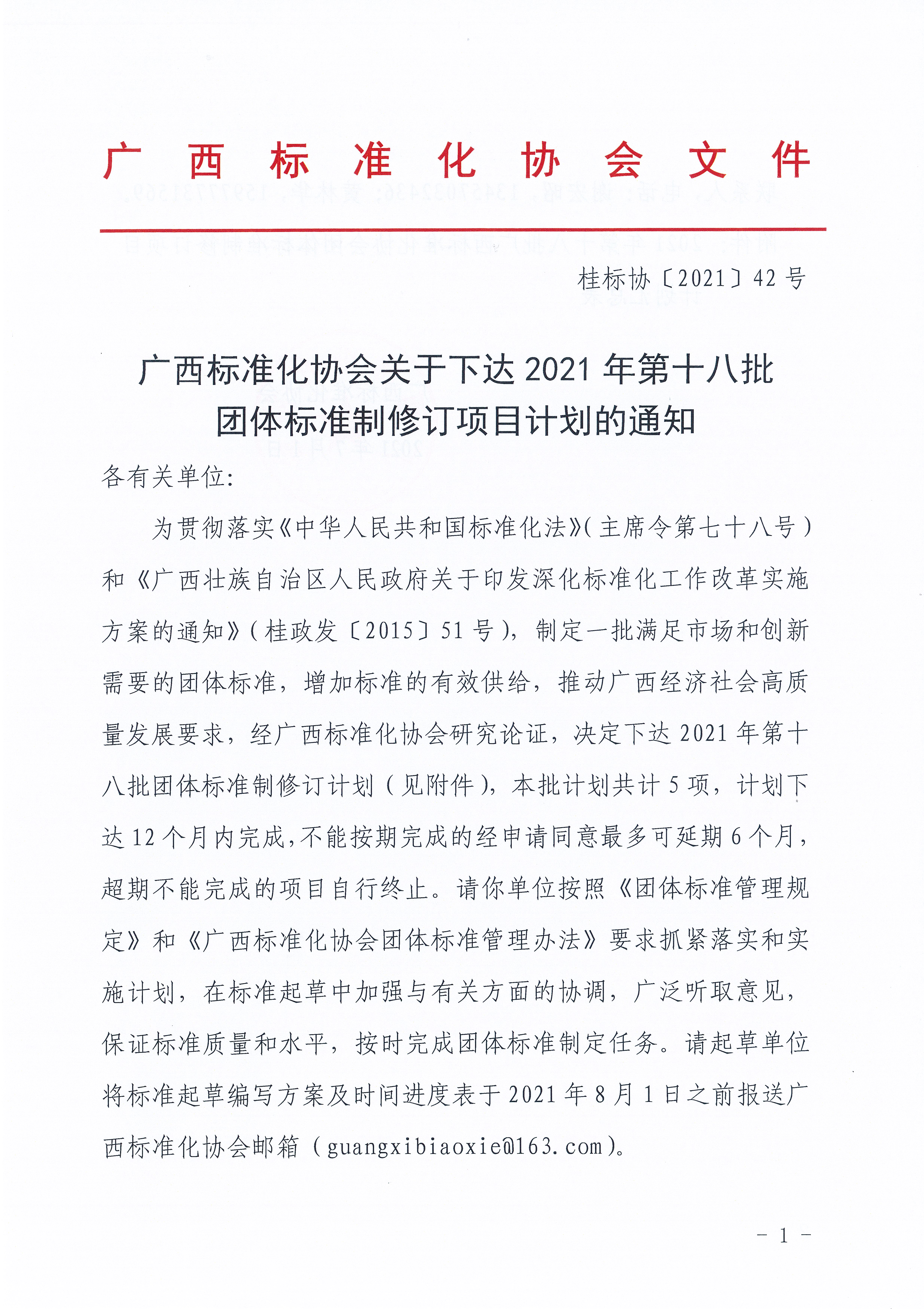 广西标准化协会关于下达2021年第十八批团体标准制定项目计划的通知