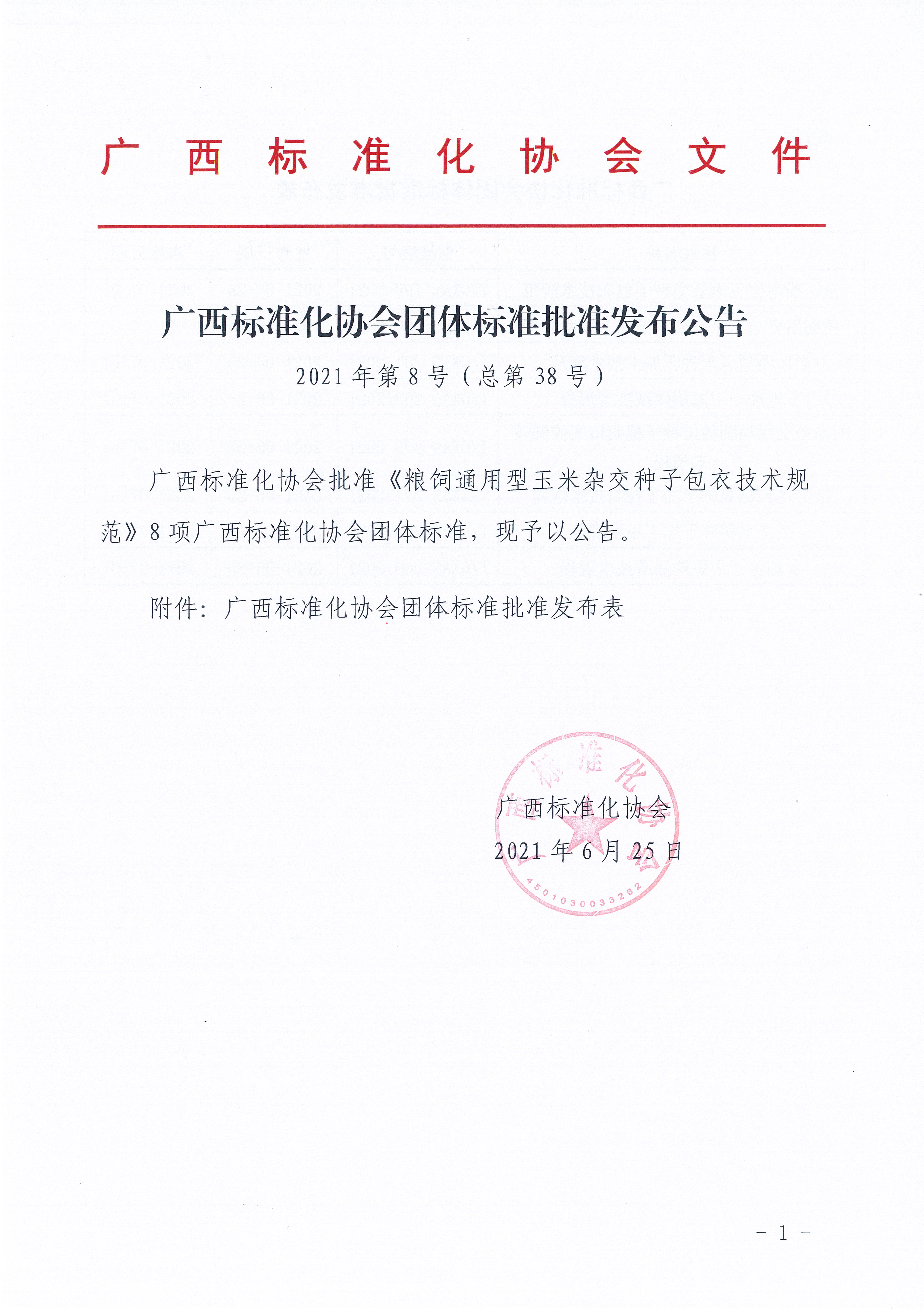 广西标准化协会团体标准批准发布公告《2021年第8号(总第38号)》