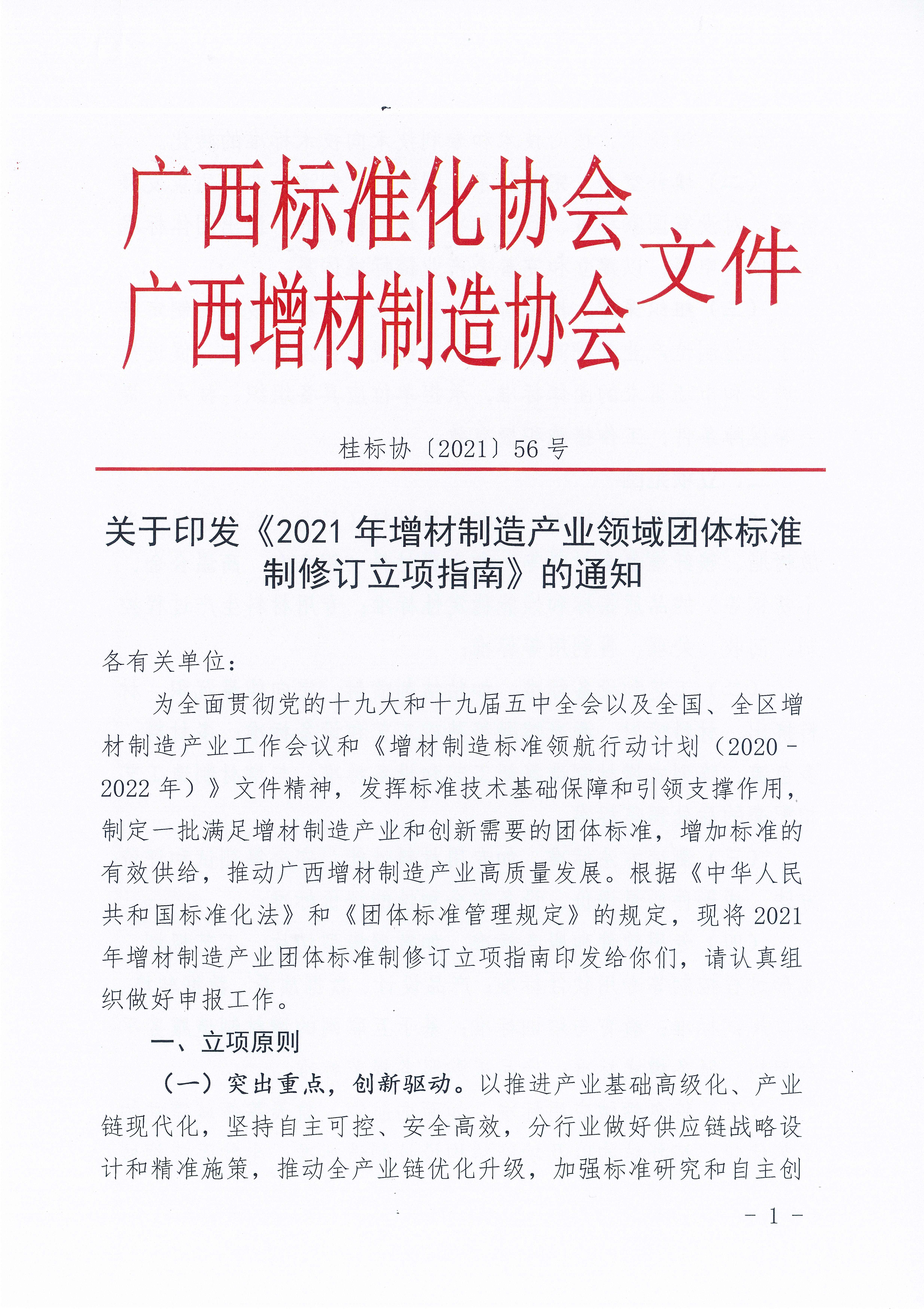 关于印发《2021年增材制造产业领域团体标准制修订立项指南》的通知