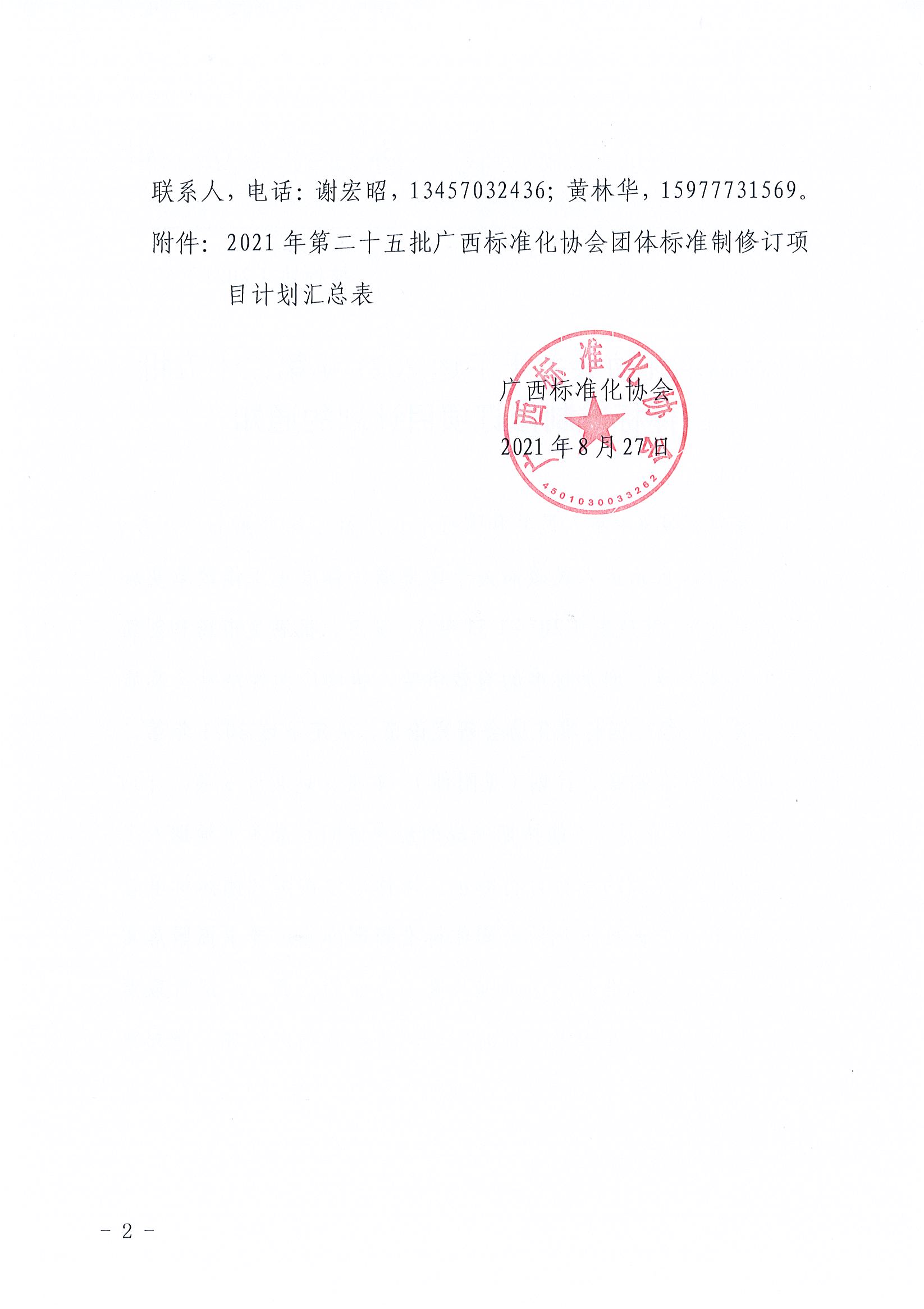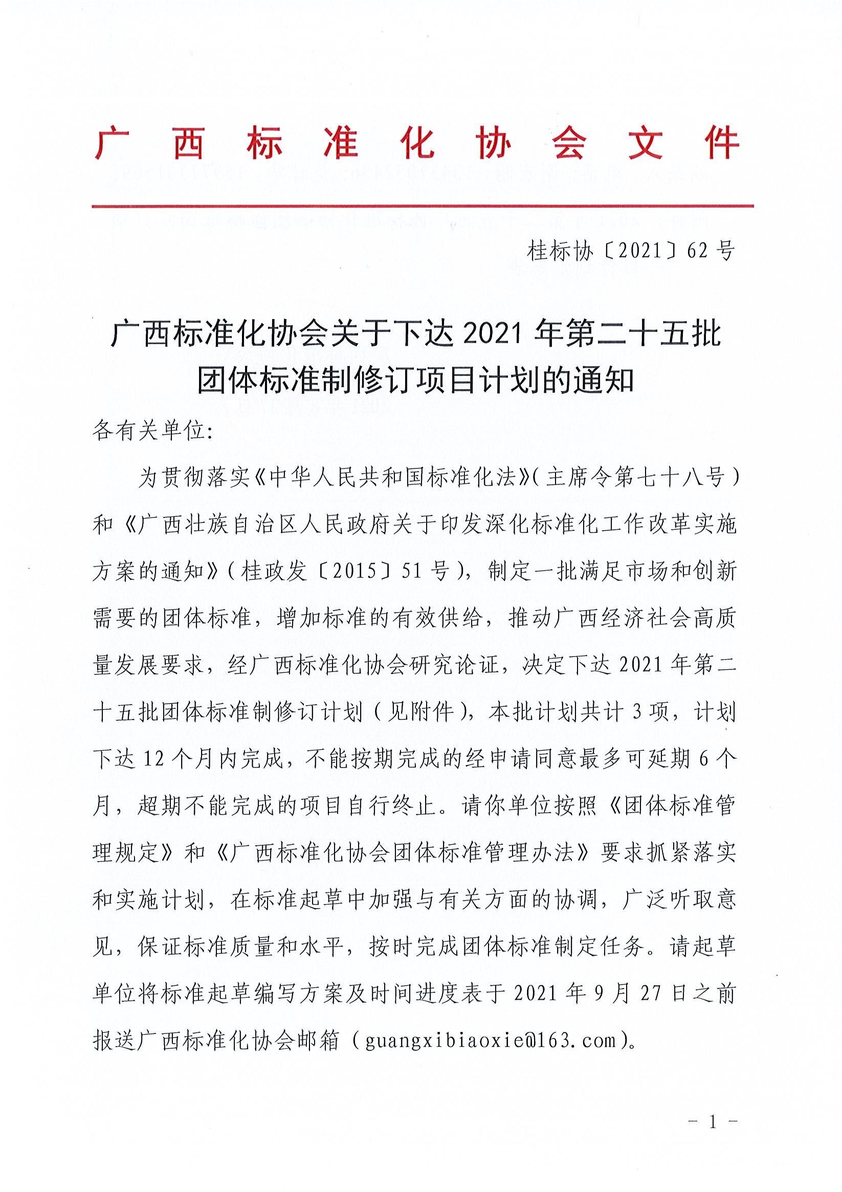 广西标准化协会关于下达2021年第二十五批团体标准制修订项目计划的通知