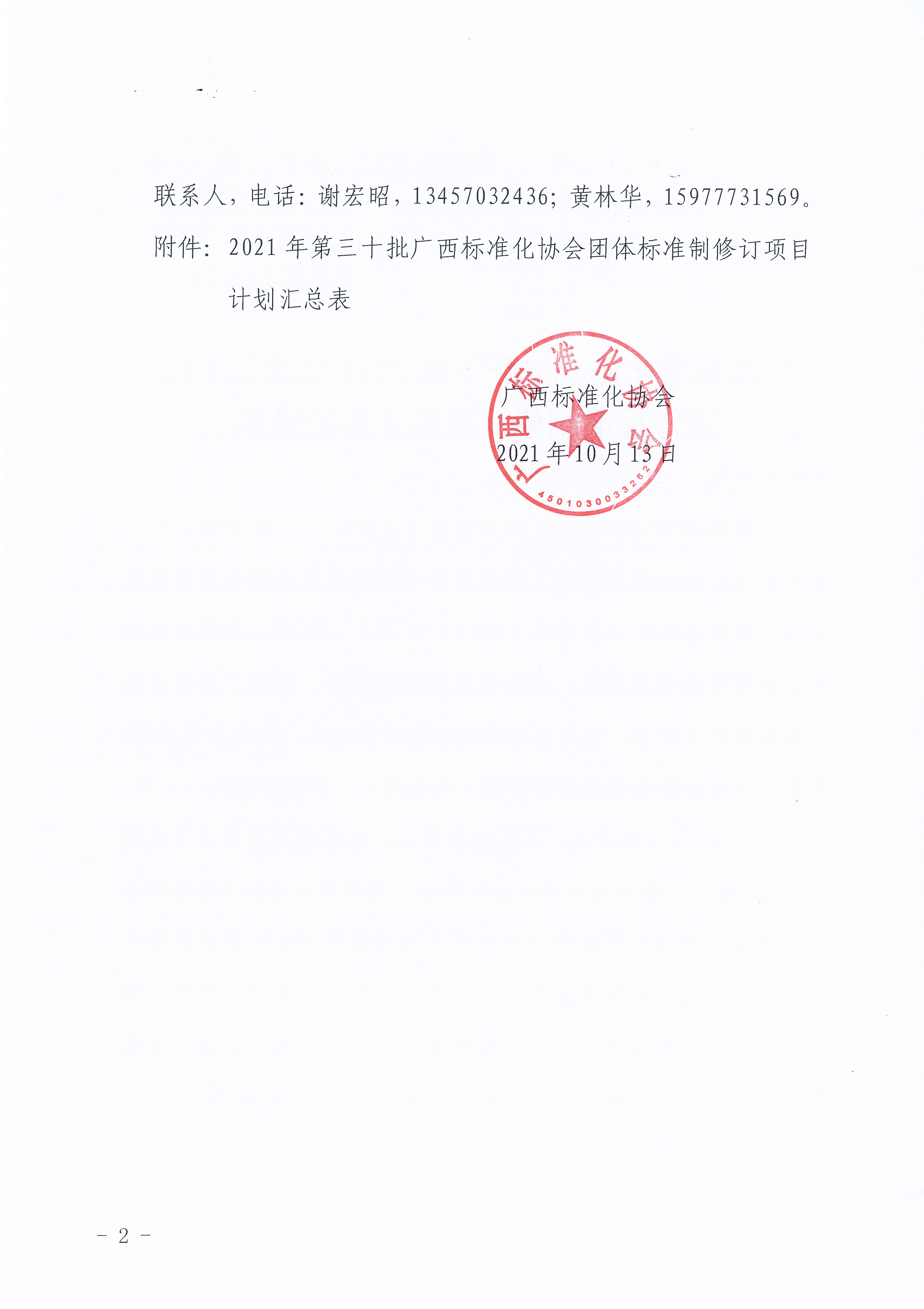 广西标准化协会关于下达2021年第三十批团体标准制修订项目计划的通知
