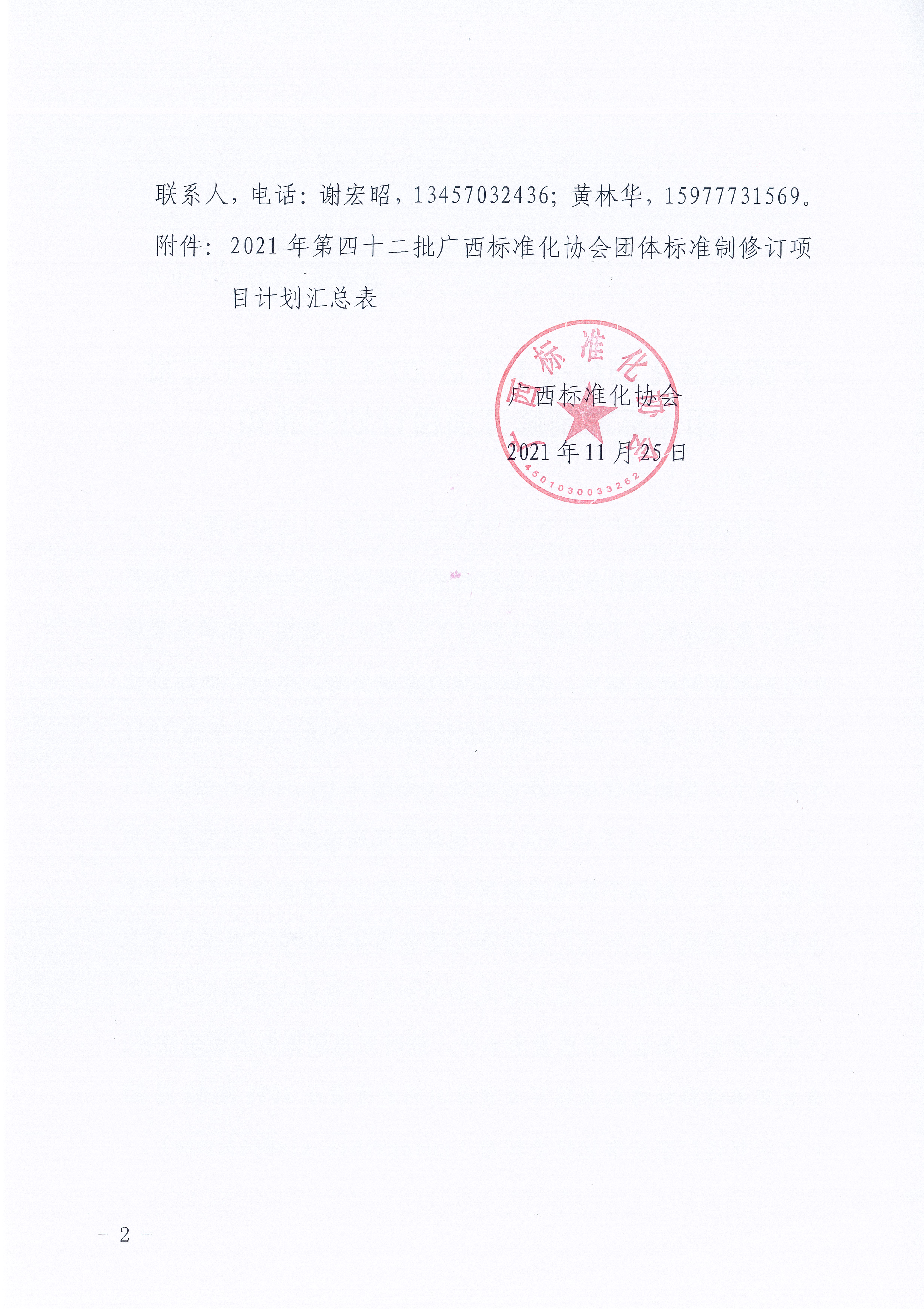 广西标准化协会关于下达2021年第四十二批团体标准制修订项目计划的通知