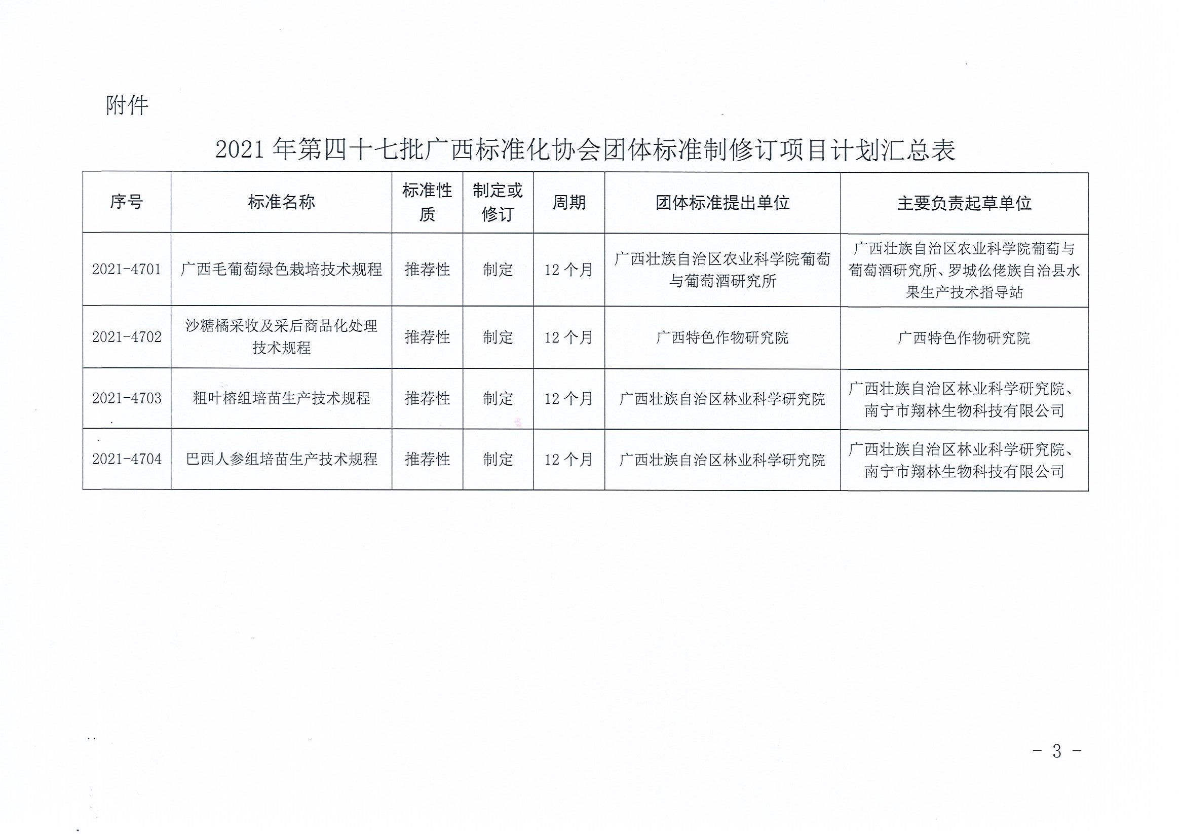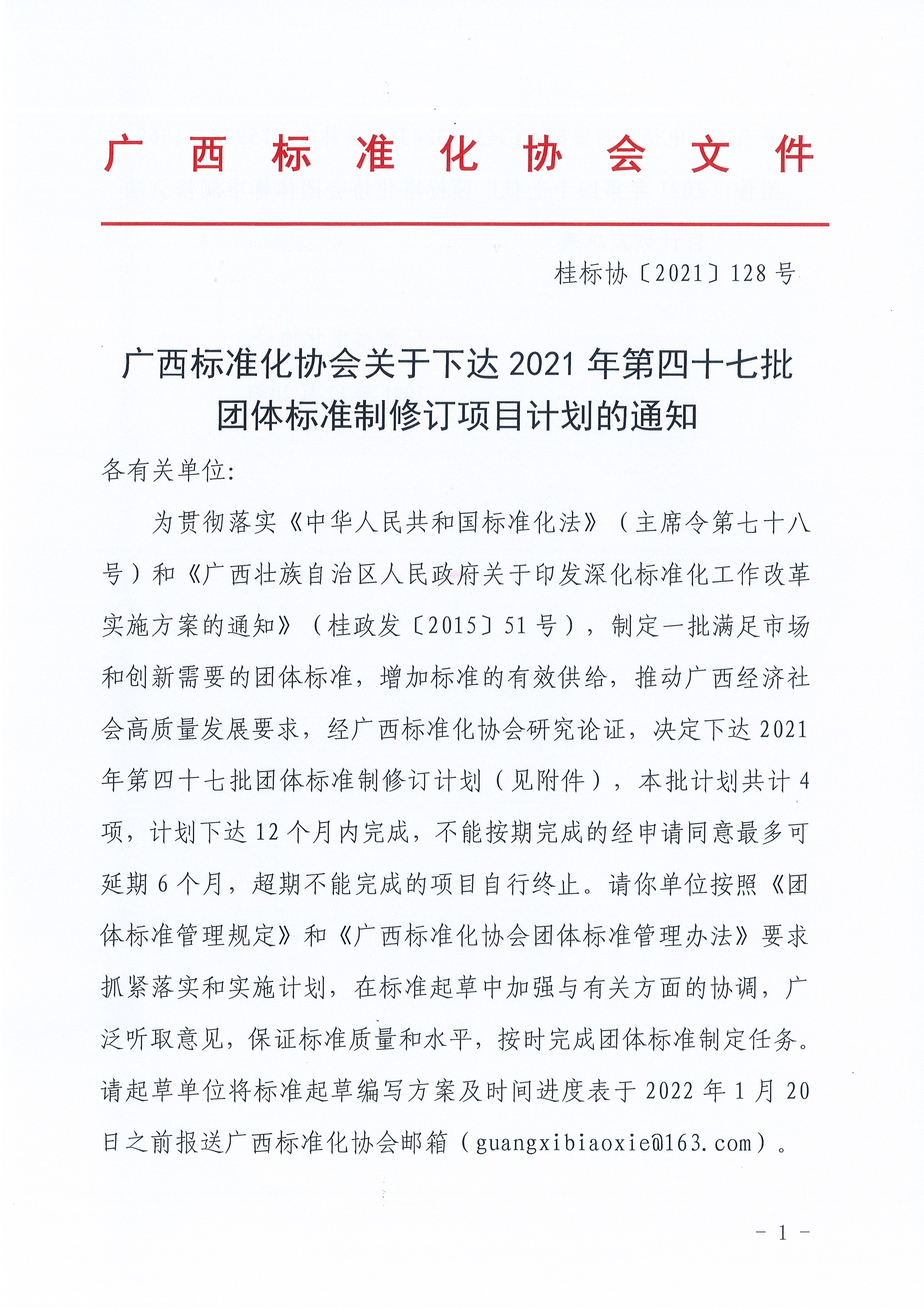 广西标准化协会关于下达2021年第四十七批团体标准制修订项目计划的通知