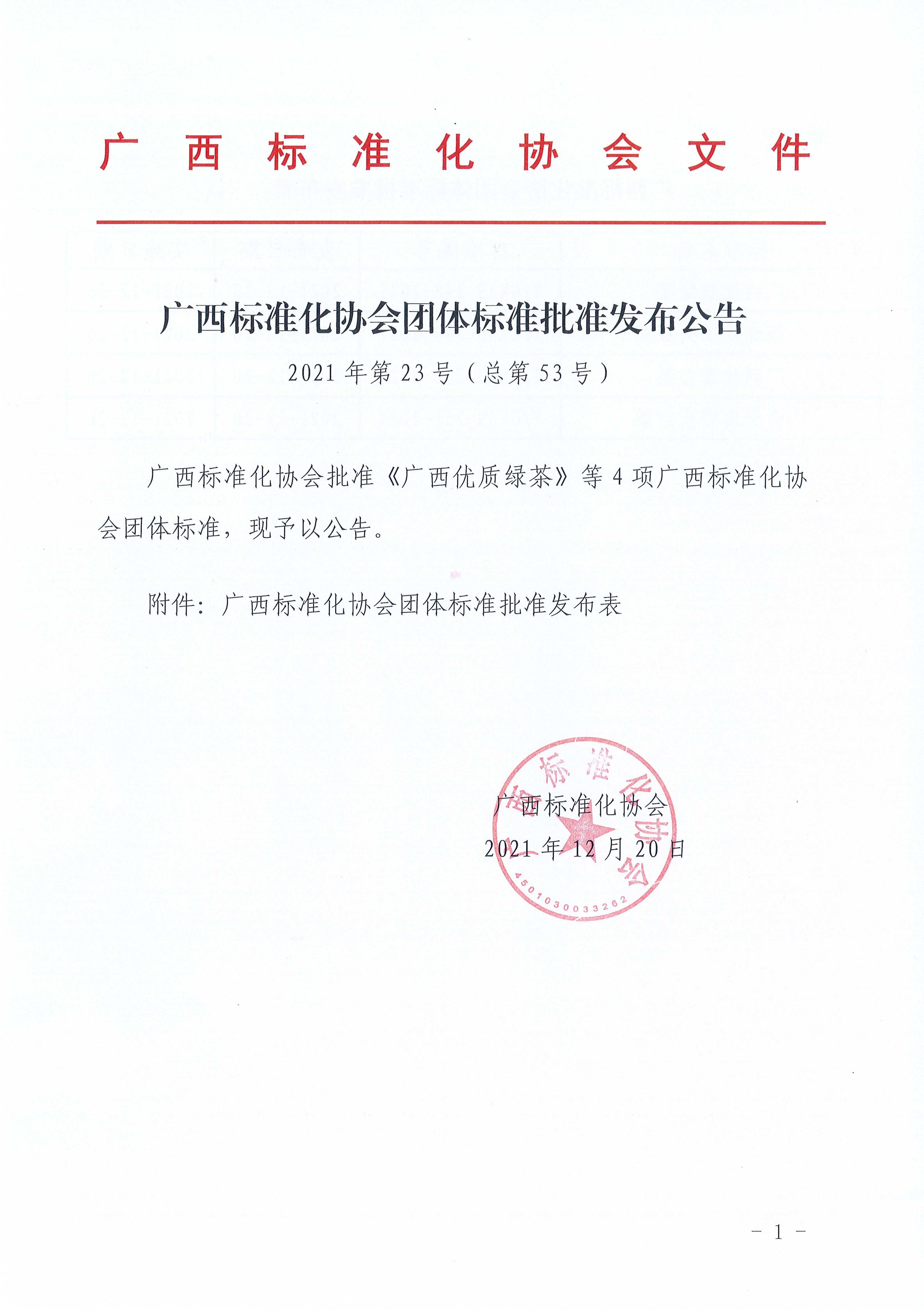 广西标准化协会团体标准批准发布公告《2021年第23号(总第53号)》