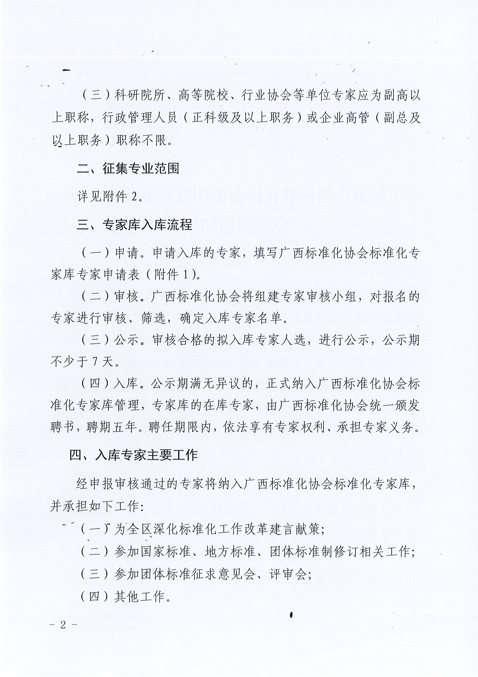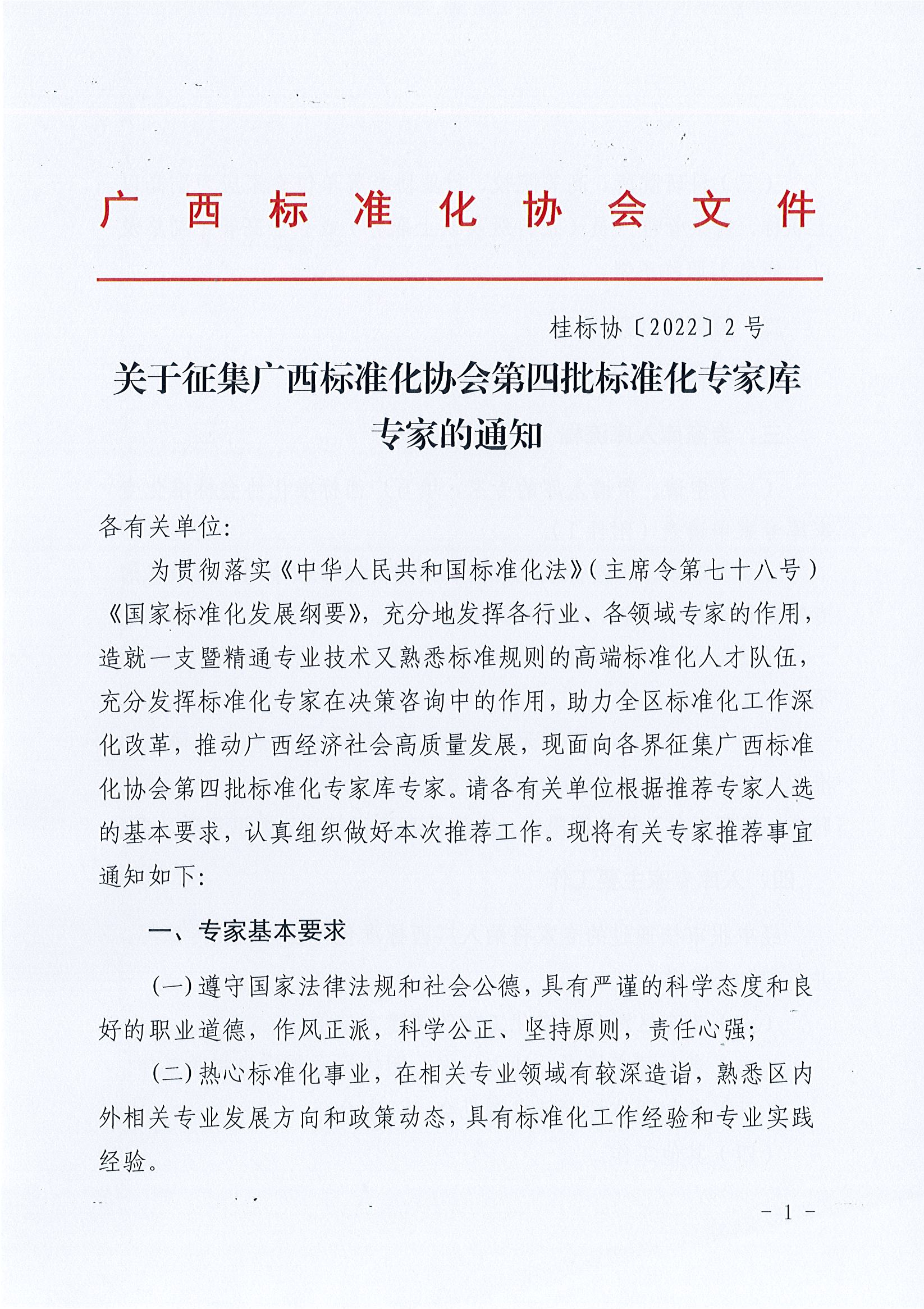 关于征集广西标准化协会第四批标准化专家库专家的通知