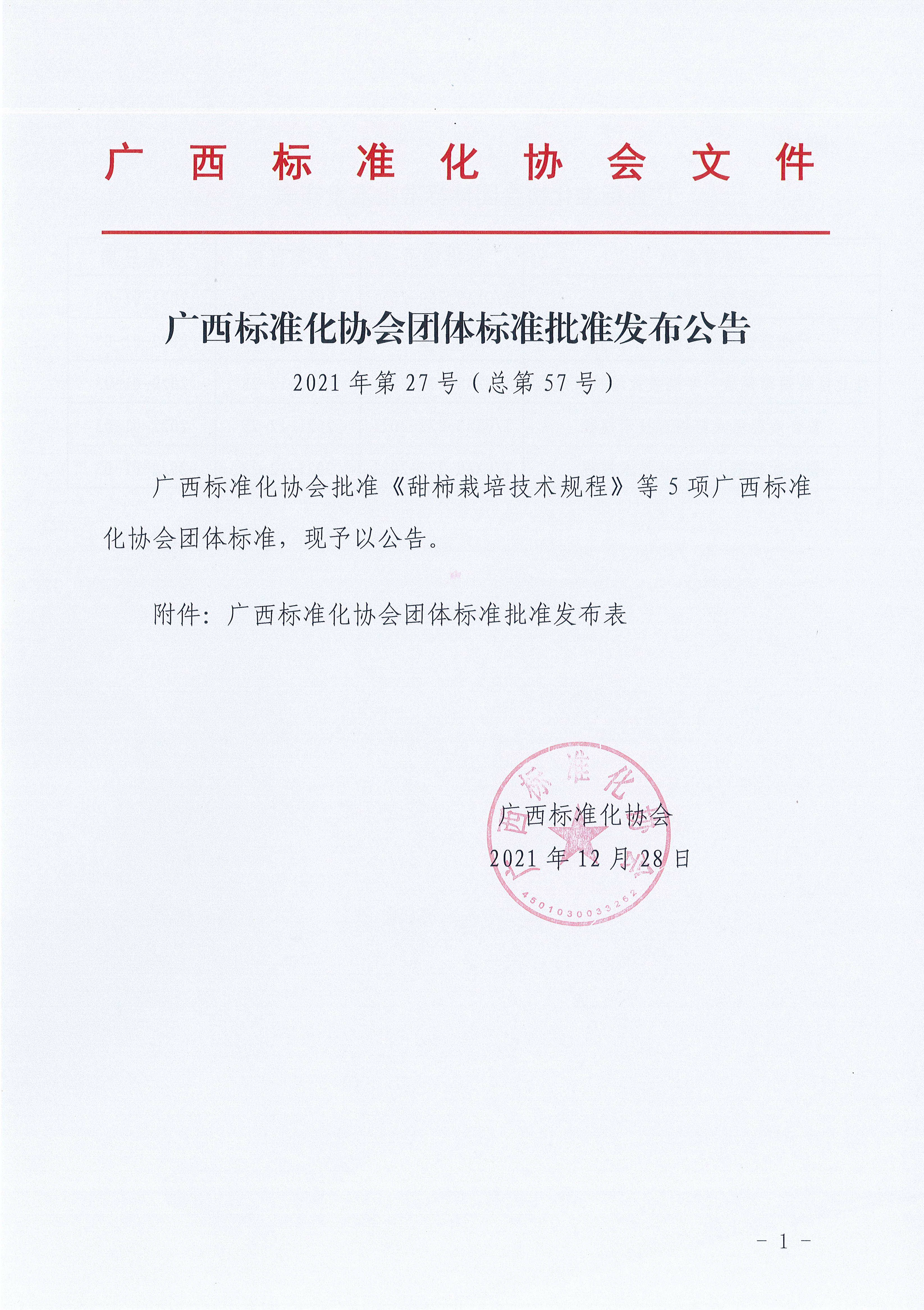 广西标准化协会团体标准批准发布公告《2021年第27号(总第57号)》
