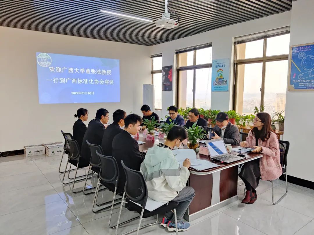 广西标准化协会谢宏昭会长和黄林华秘书长亲切接待童教授一行,并就推动广西碳酸钙行业地方标准和团体标准等合作进行深入研讨。谢会长表示,根据国家《标准化法》、《国家标准化发展纲要》、《地方标准管理办法》、《团体标准管理规定》等法律法规,在广西市场监督管理局的领导下,标准化协会和碳酸钙协会可以进一步加深合作,立足新发展阶段,全面贯彻新发展理念,推动我区工业高质量发展,着眼满足经济社会及碳酸钙行业发展的标准需求,携手申报更多行业团体标准和地方标准。