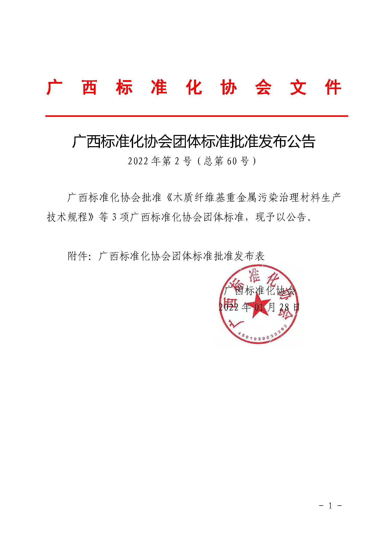 广西标准化协会团体标准批准发布公告《2022年第1号(总第59号)》