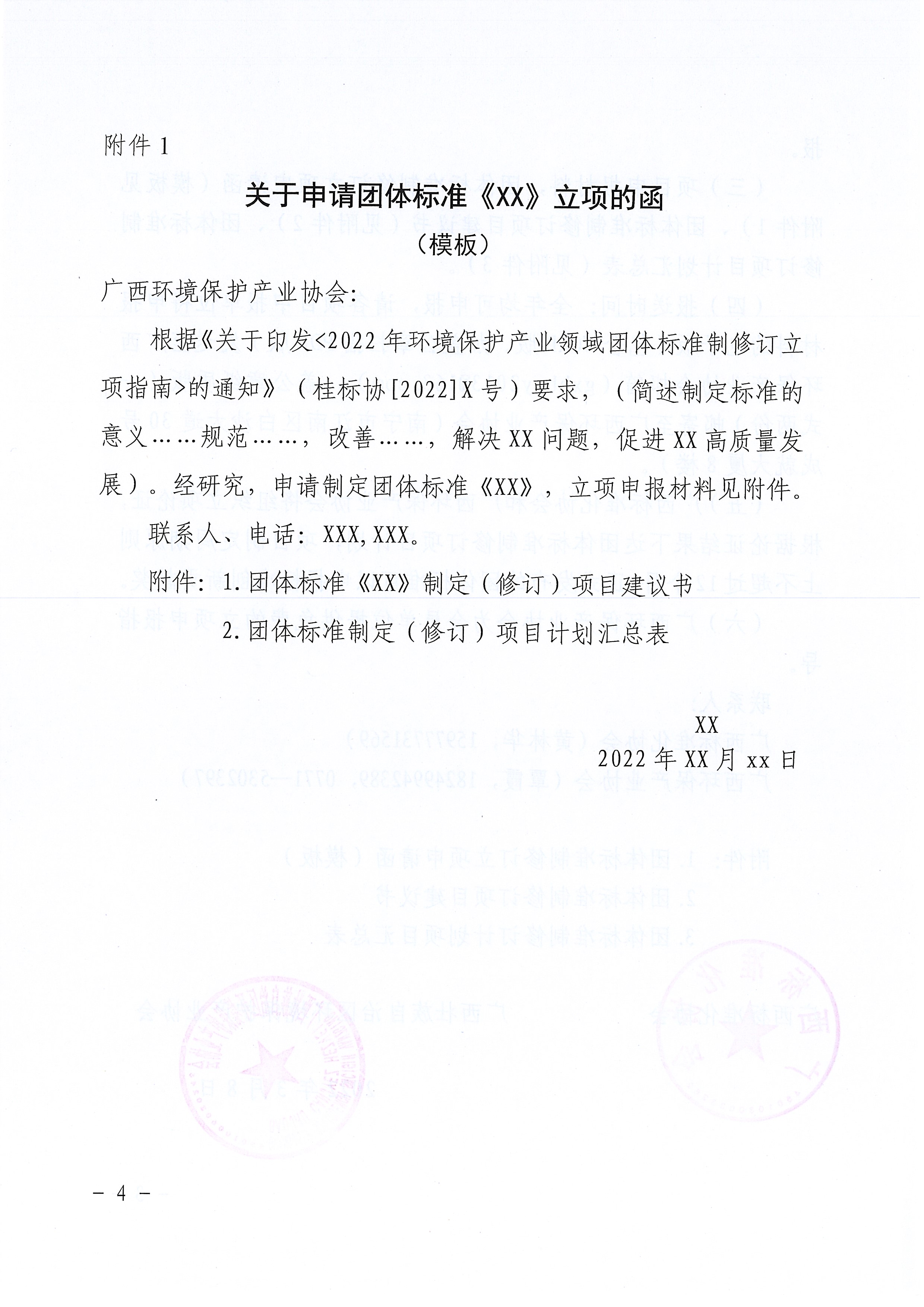 附件1 关于申请团体标准《XX》立项的函 (模板)