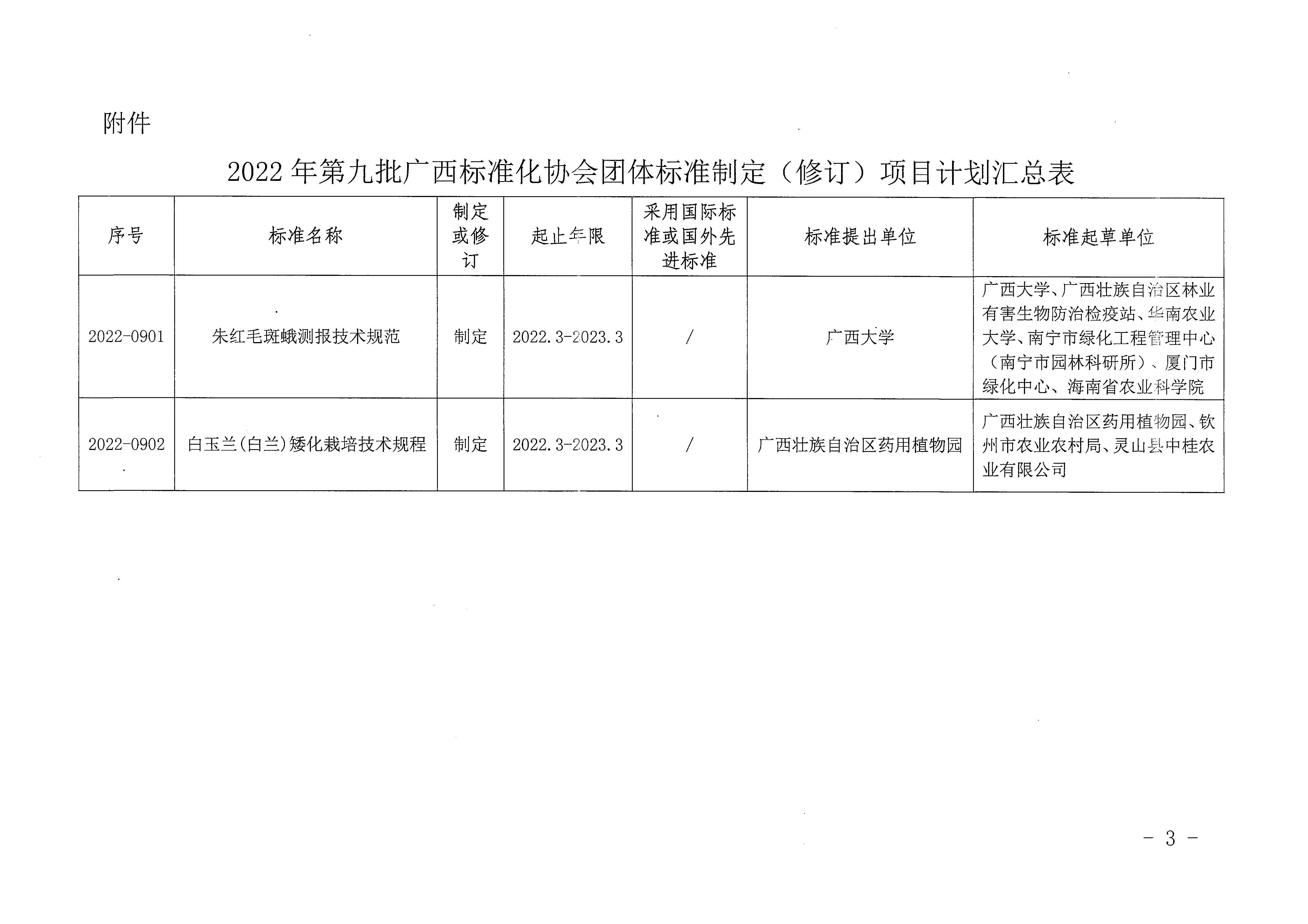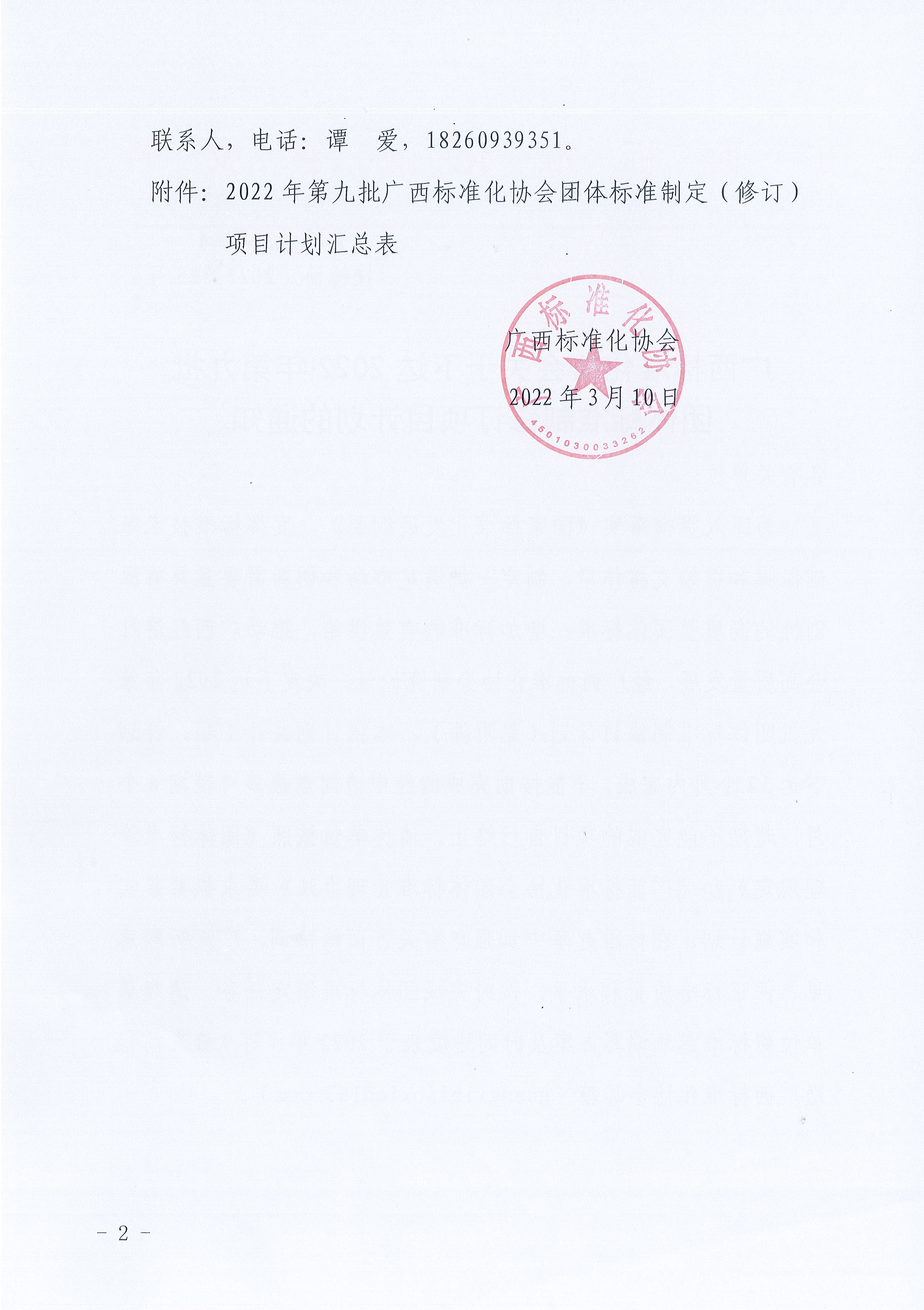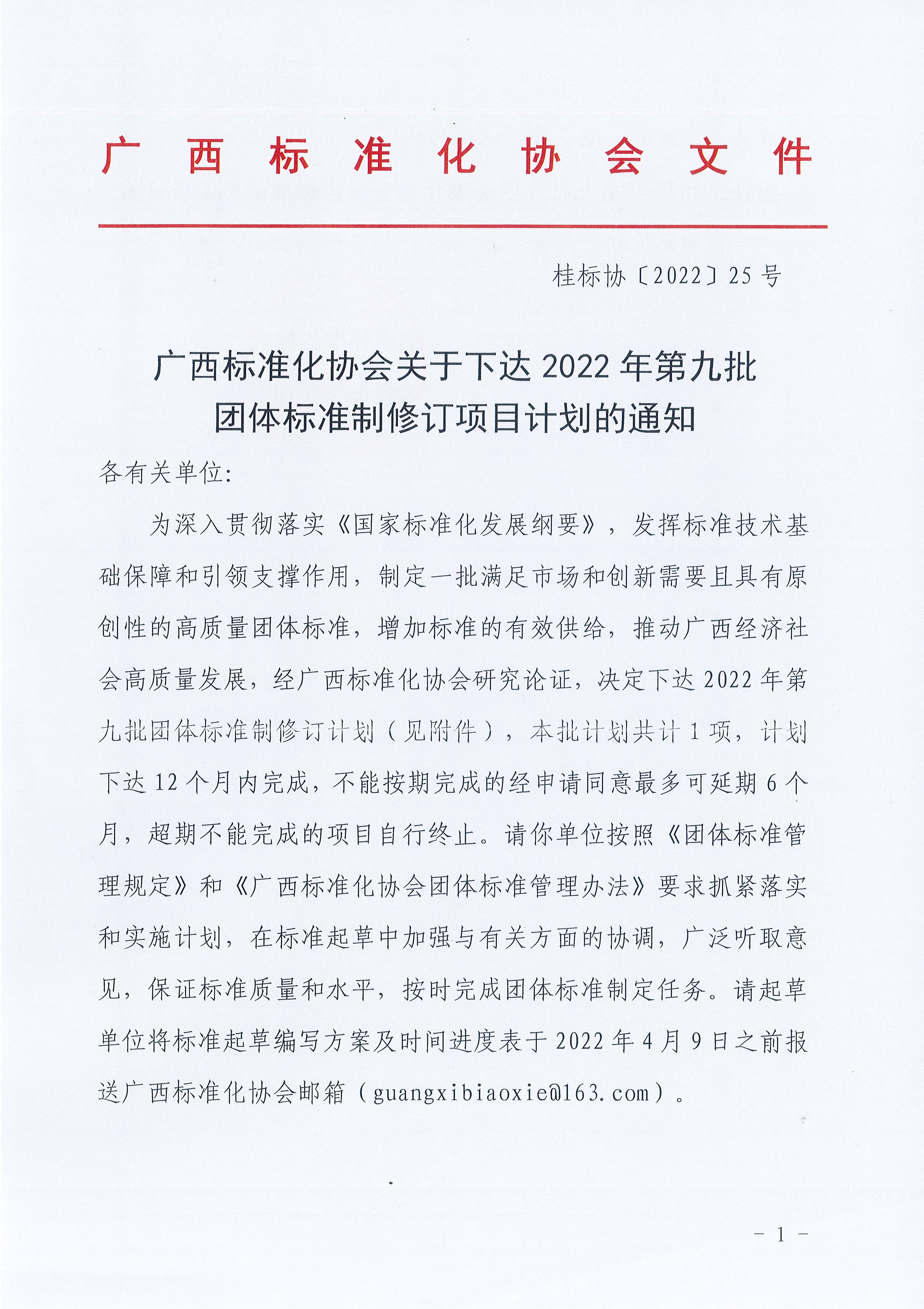 广西标准化协会关于下达2022年第九批团体标准制修订项目计划的通知