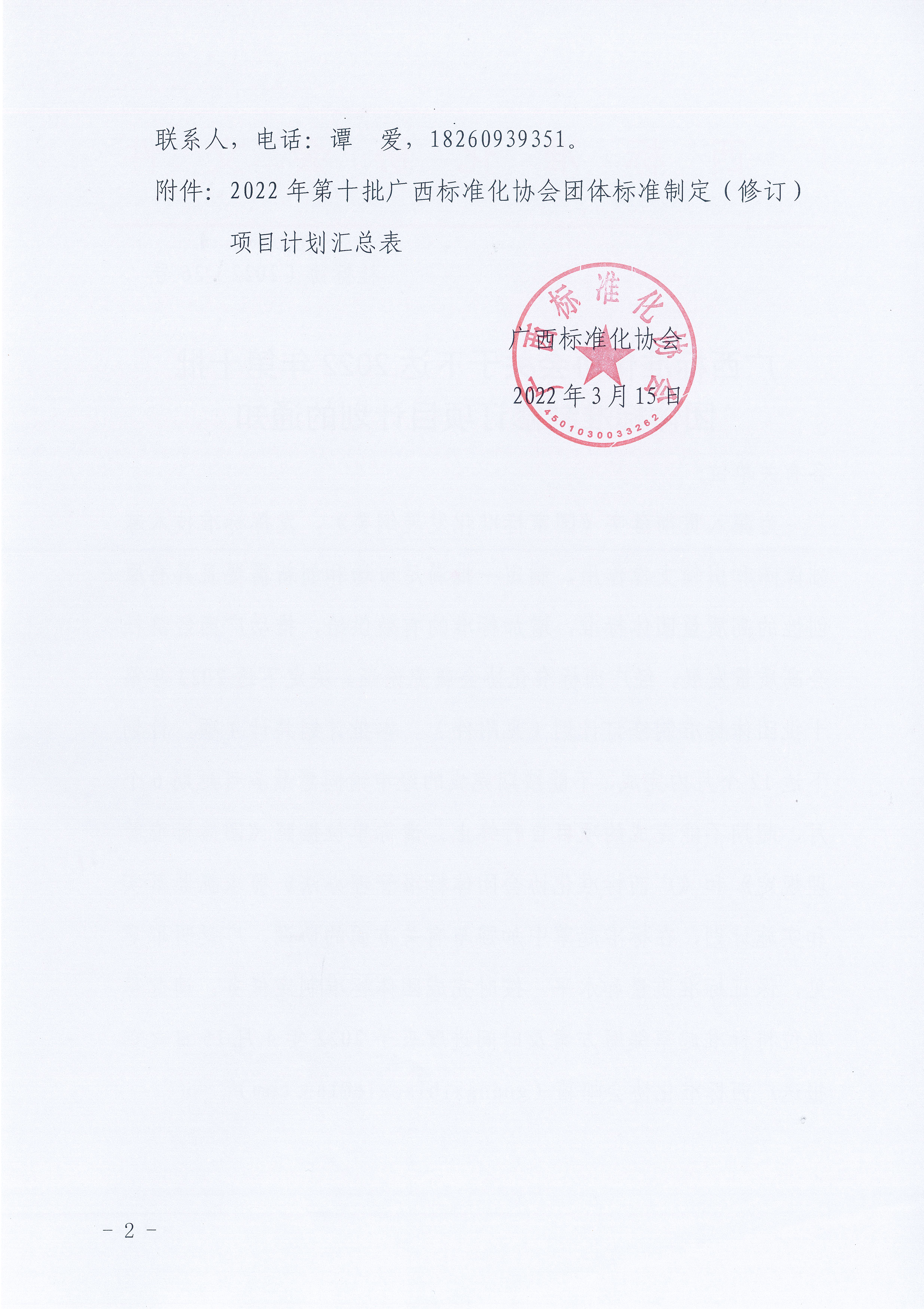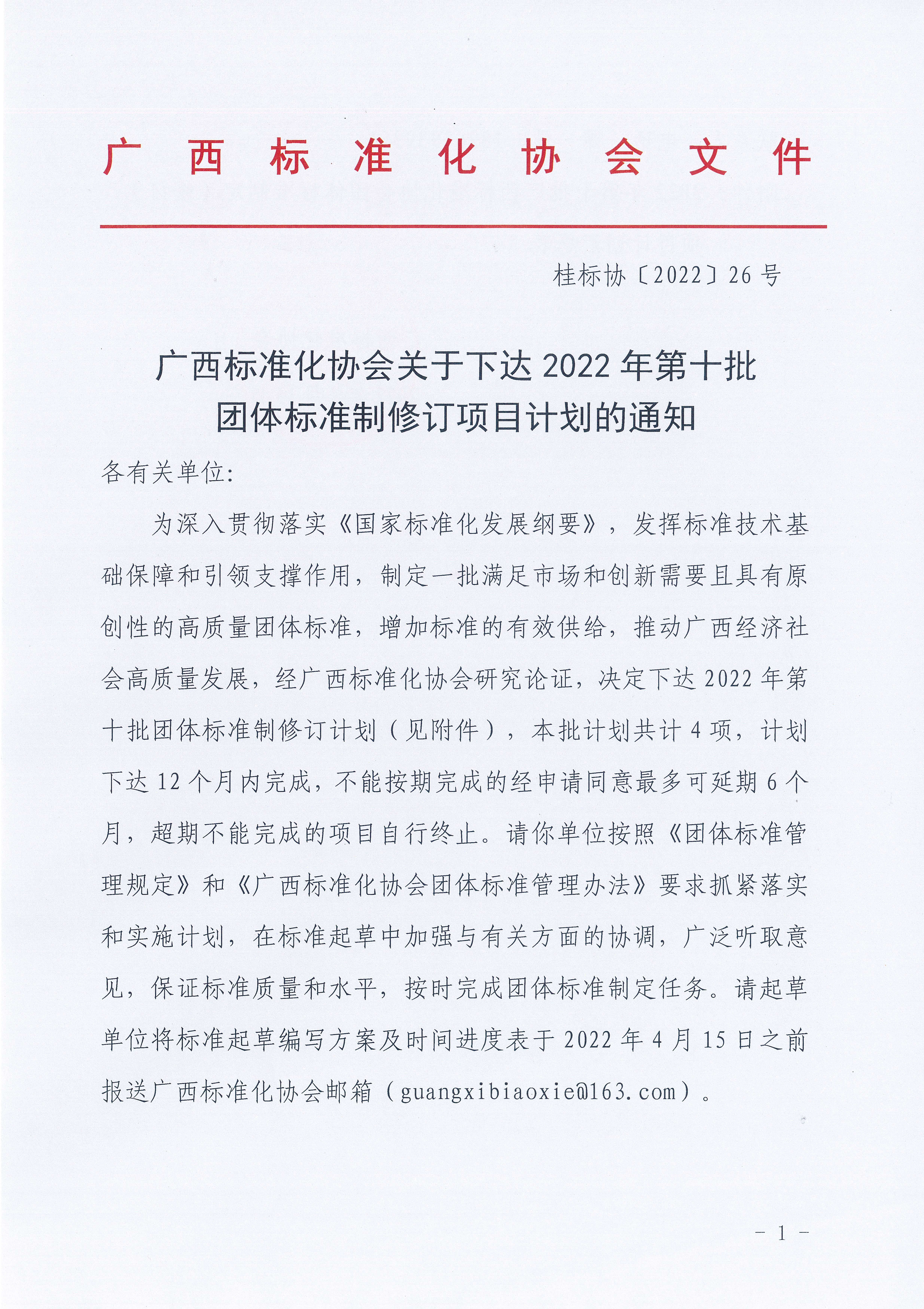 广西标准化协会关于下达2022年第十批团体标准制修订项目计划的通知
