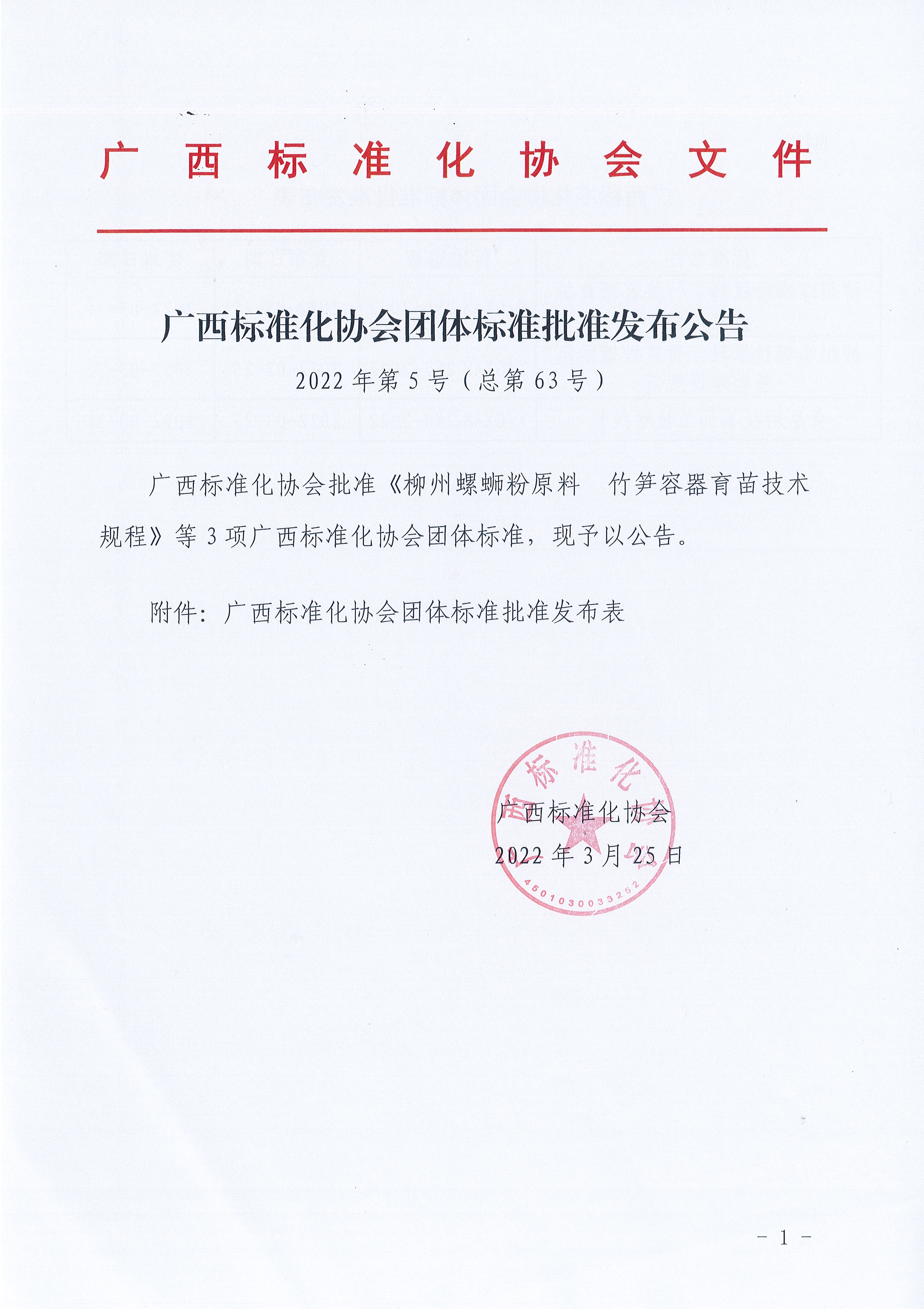 广西标准化协会团体标准批准发布公告《2022年第5号(总第63号)》