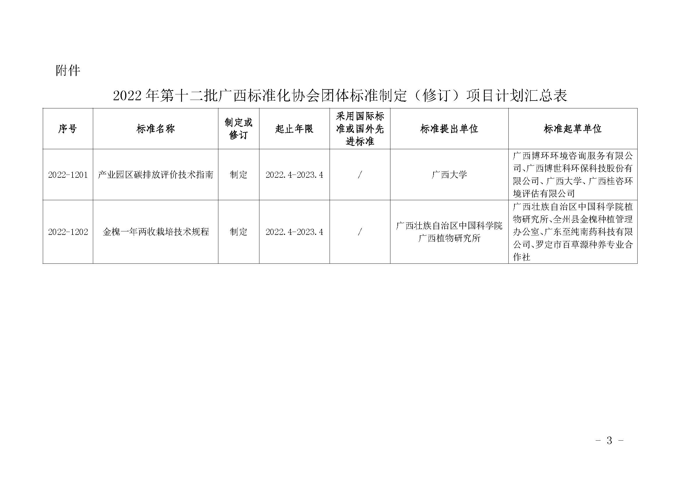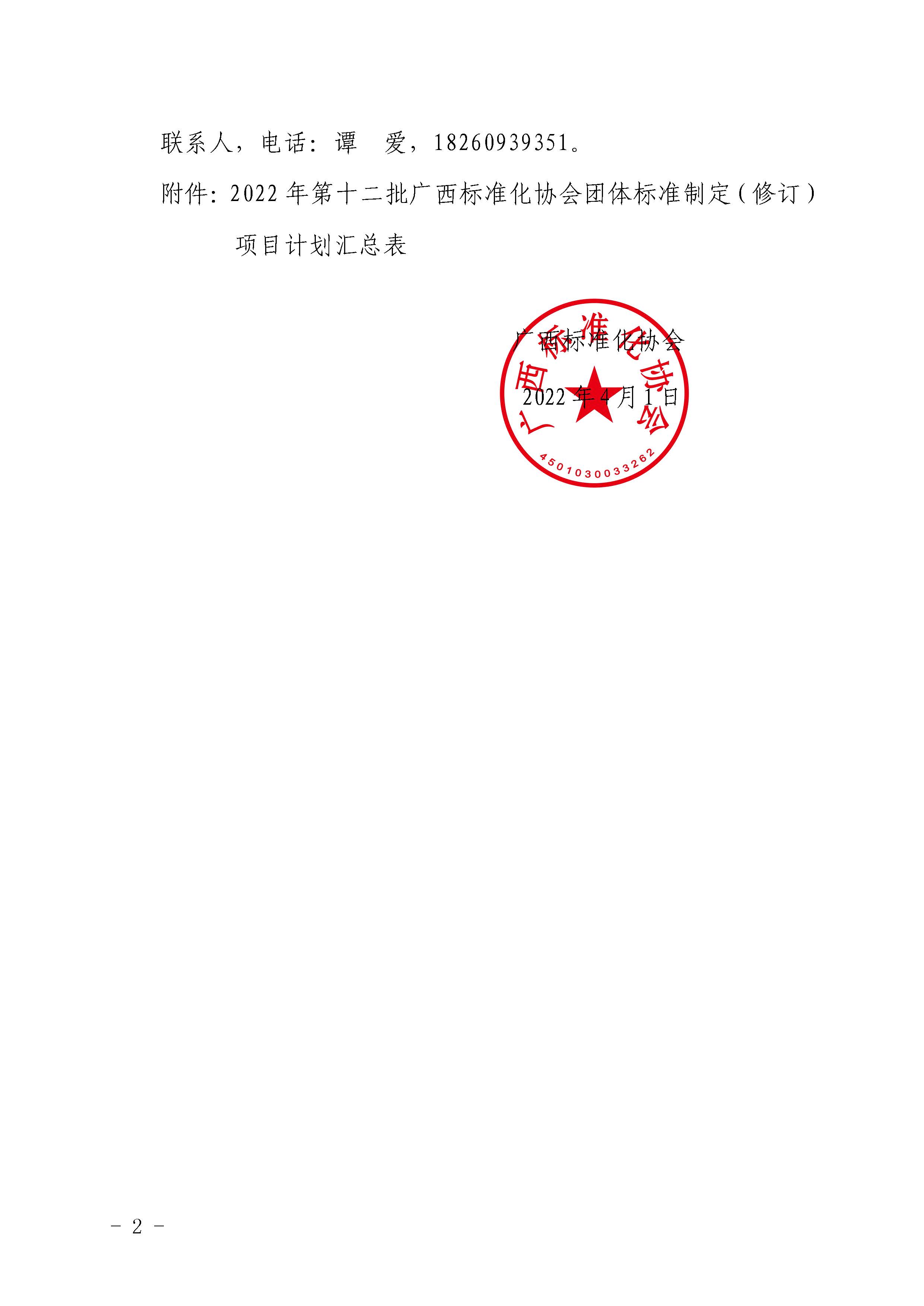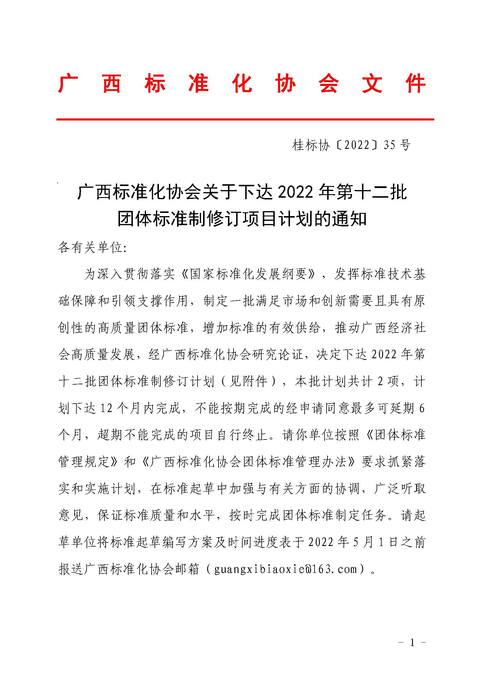 广西标准化协会关于下达2022年第十二批团体标准制修订项目计划的通知
