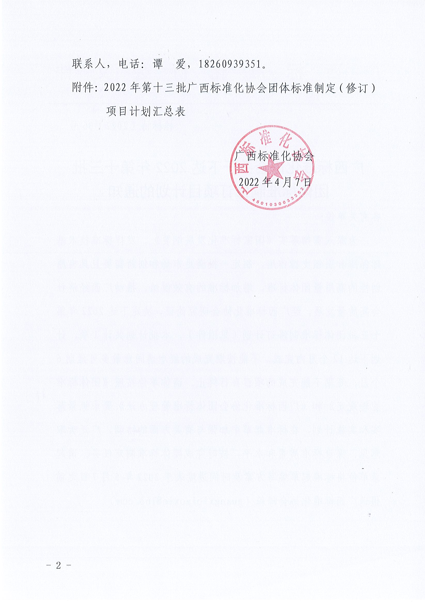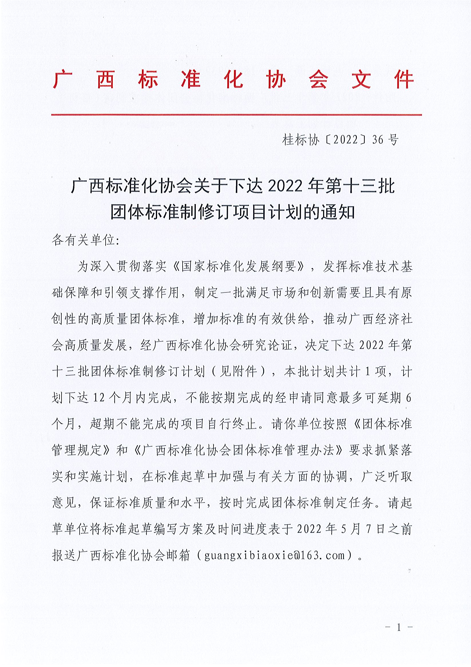 广西标准化协会关于下达2022年第十三批团体标准制修订项目计划的通知