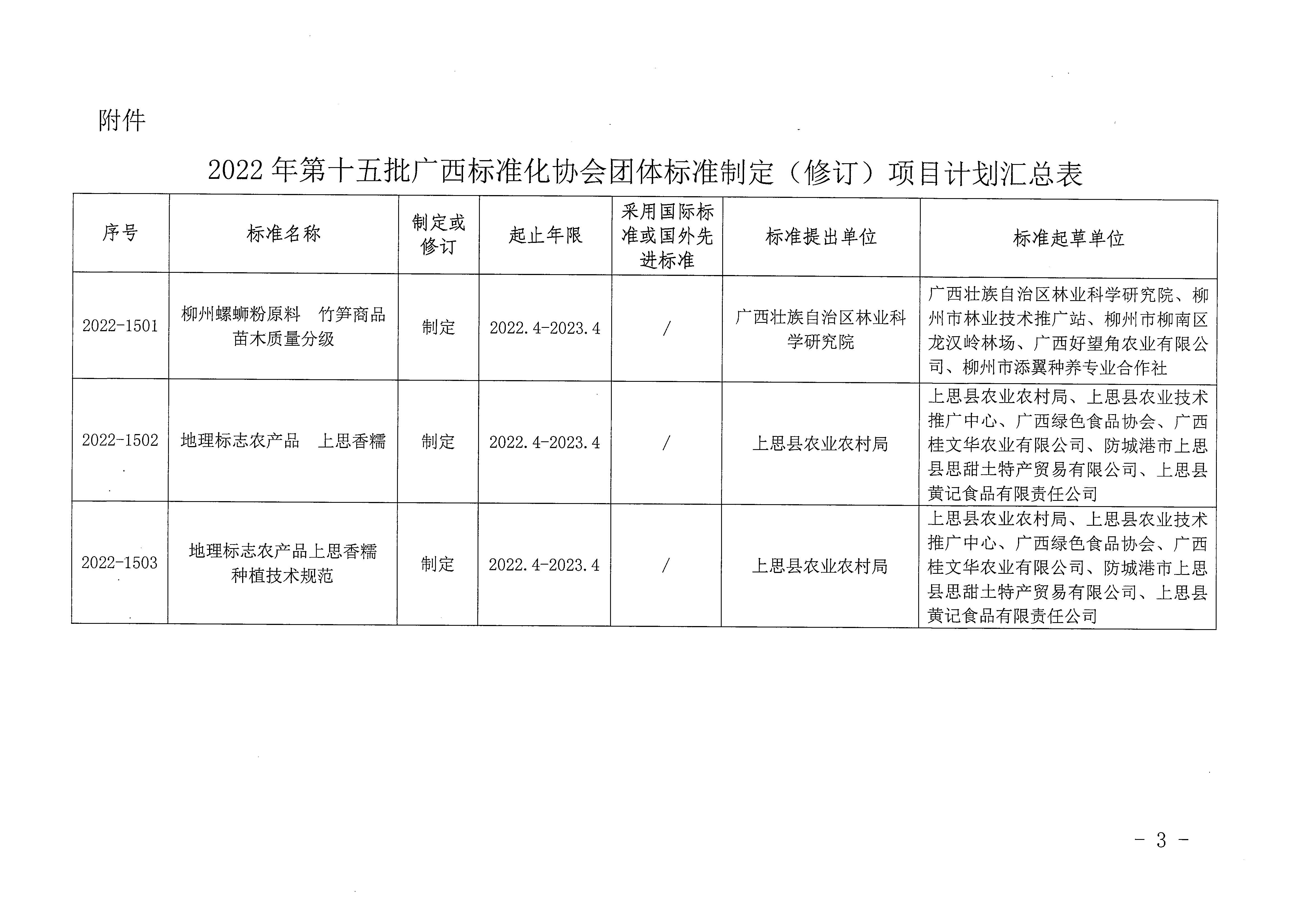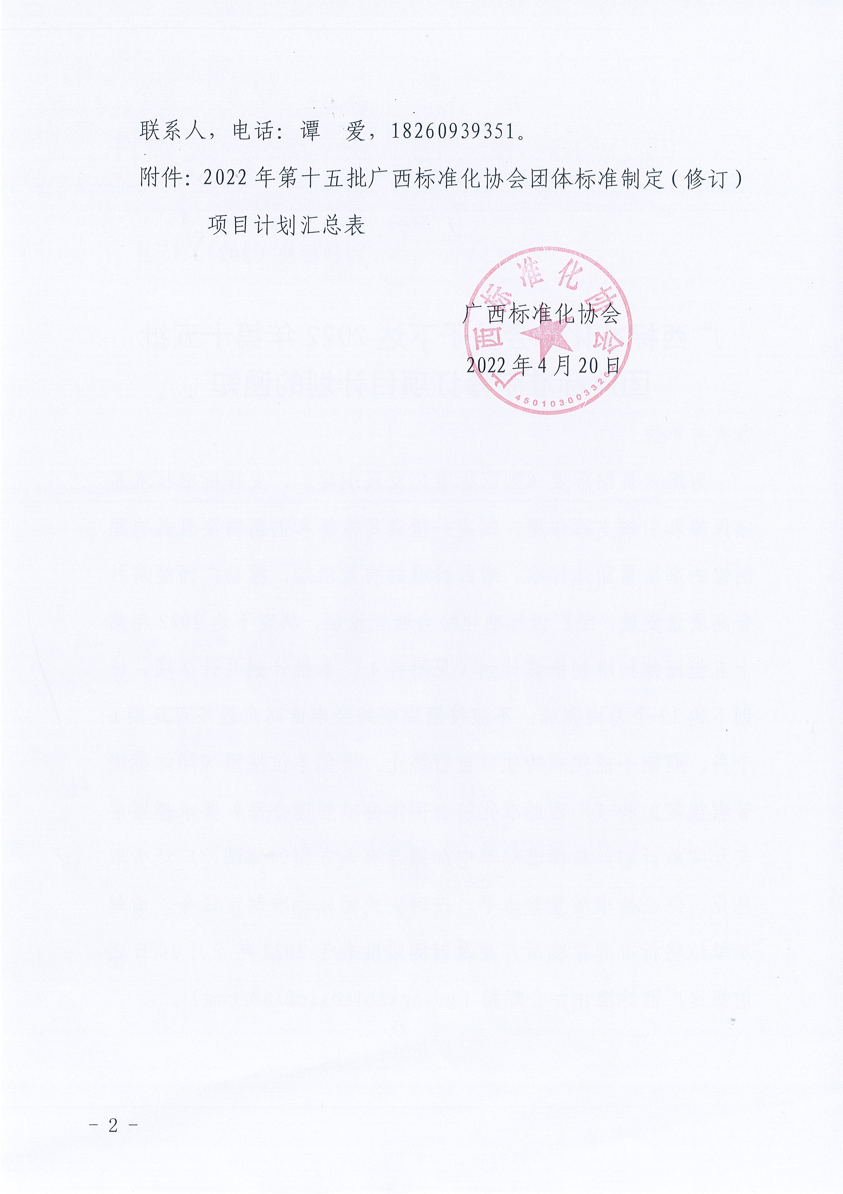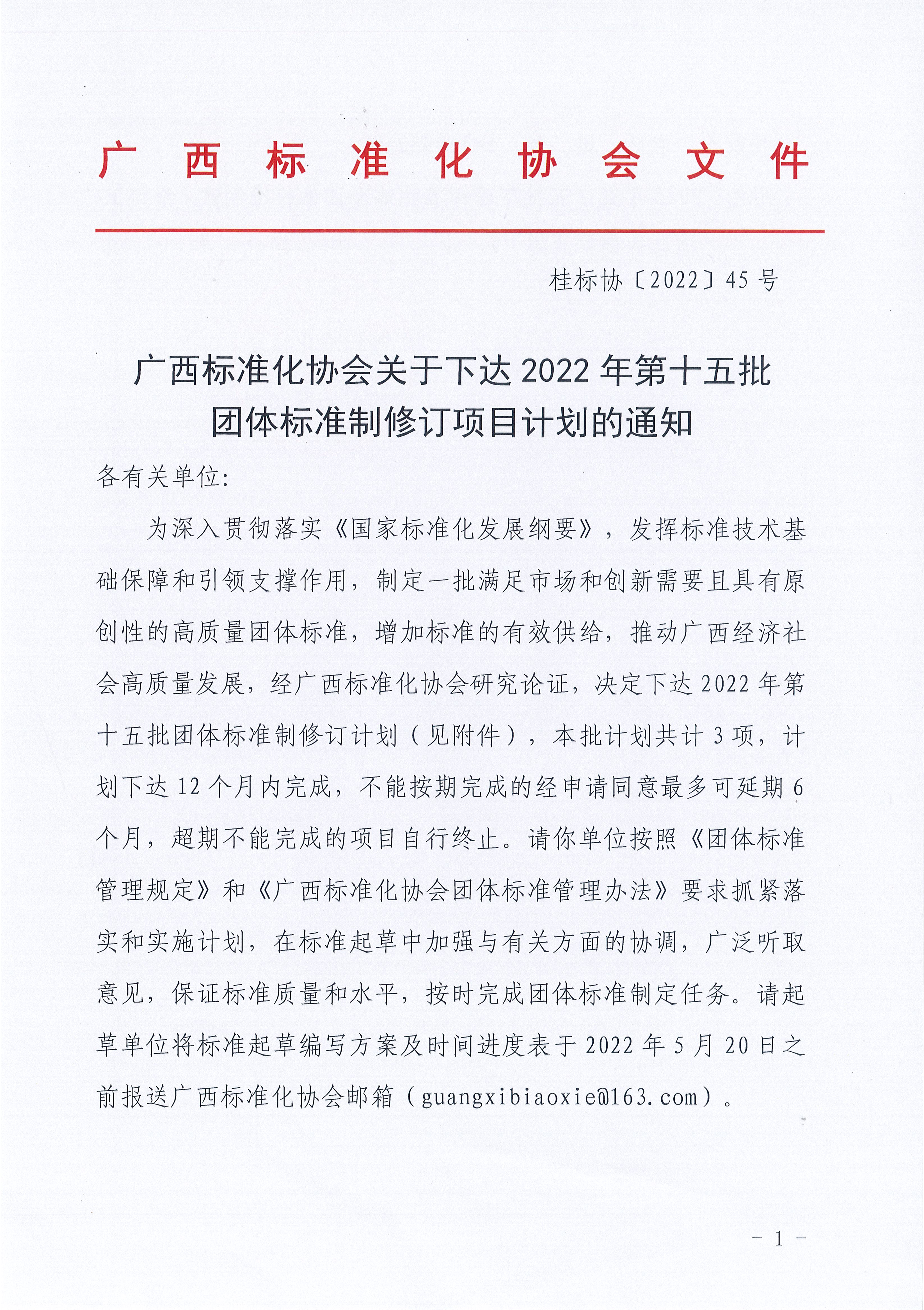 广西标准化协会关于下达2022年第十五批团体标准制修订项目计划的通知