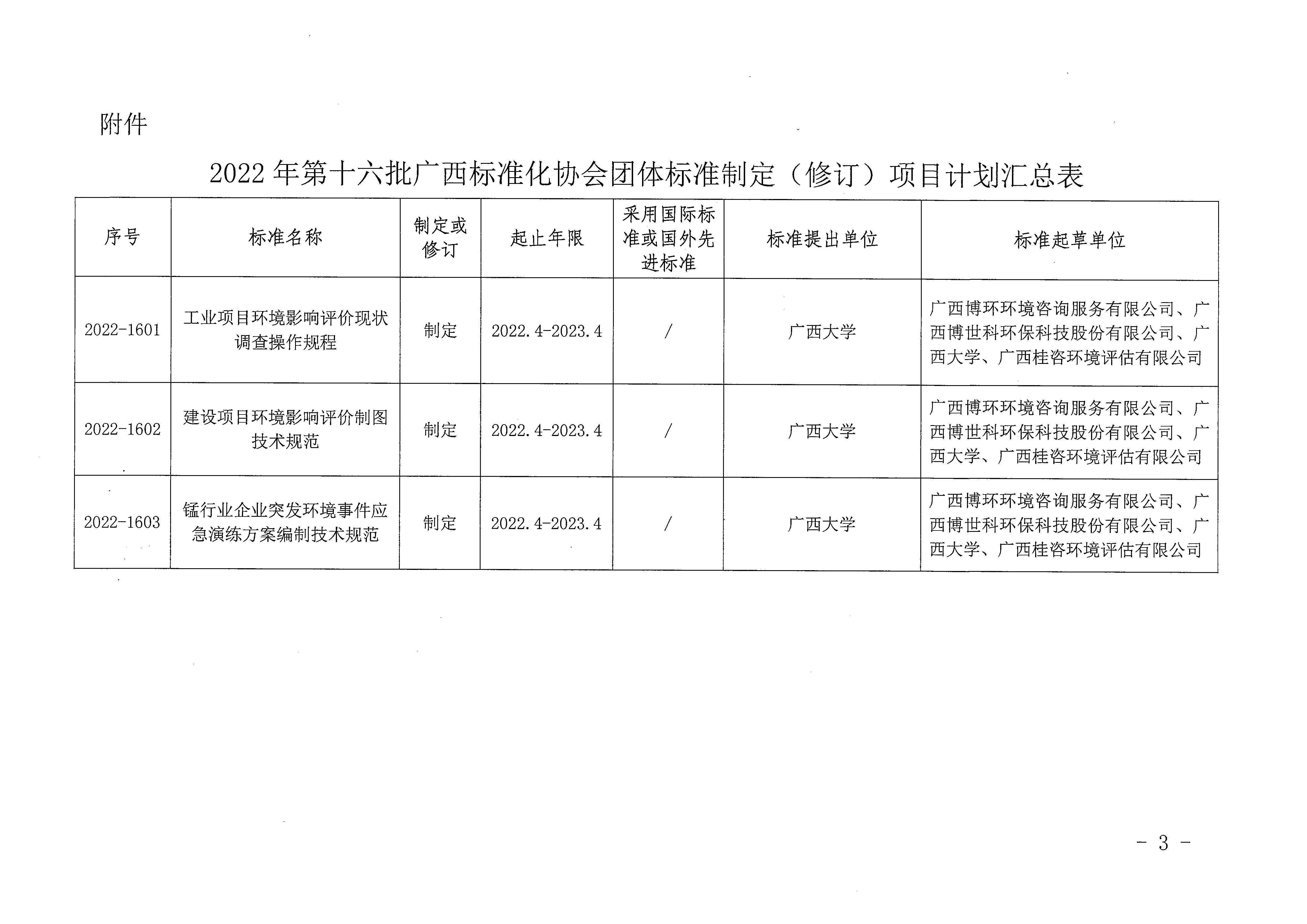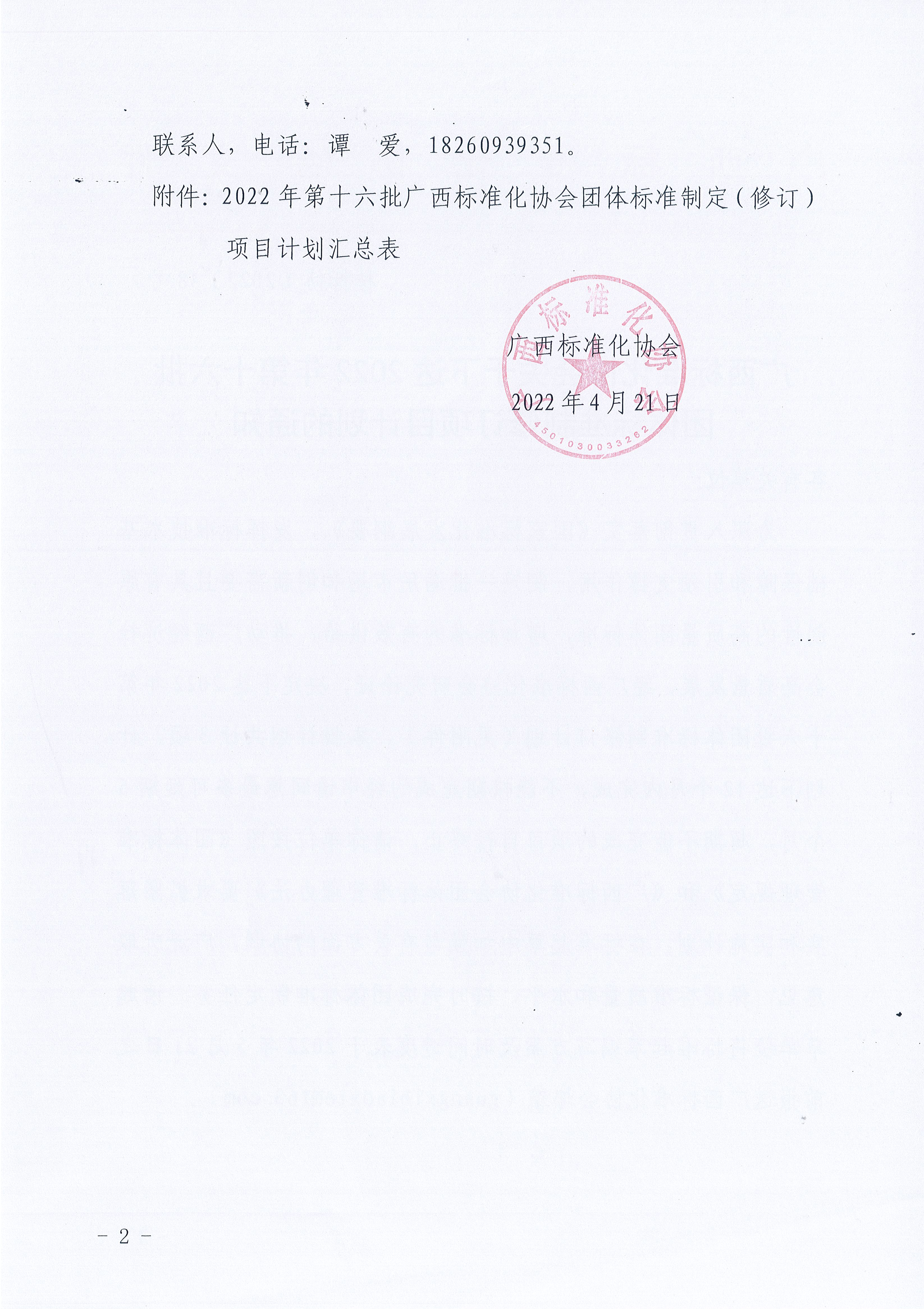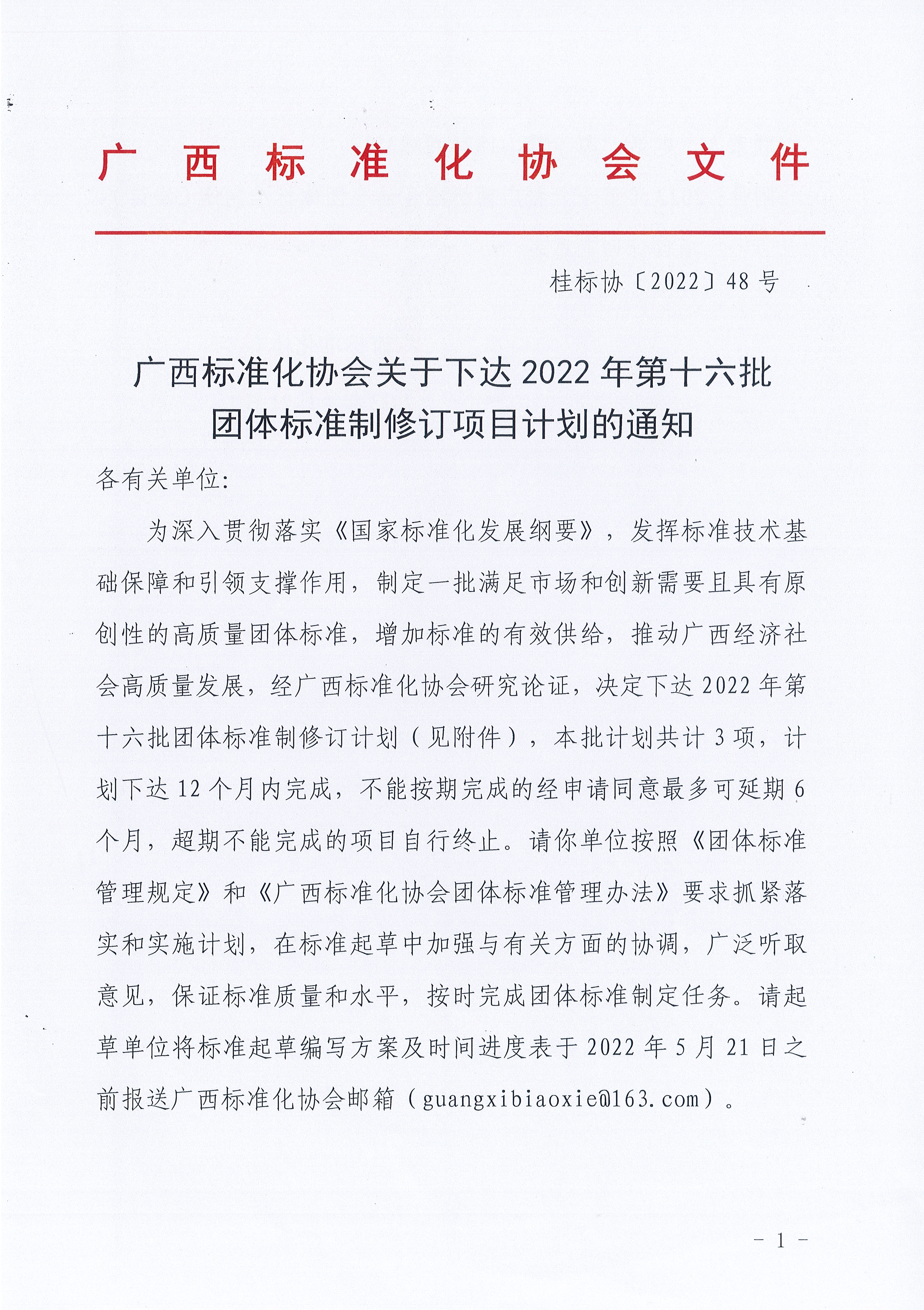 广西标准化协会关于下达2022年第十六批团体标准制修订项目计划的通知