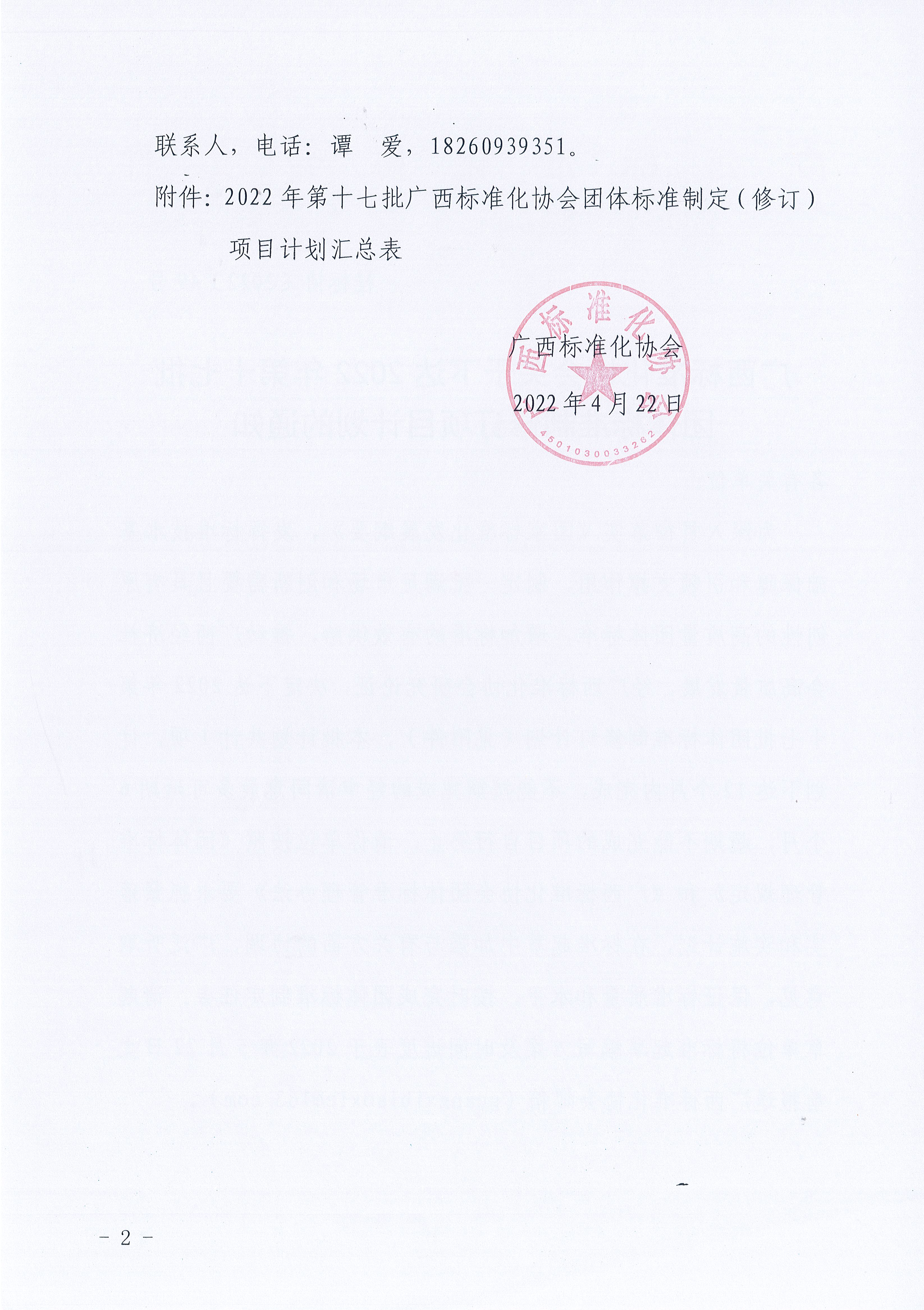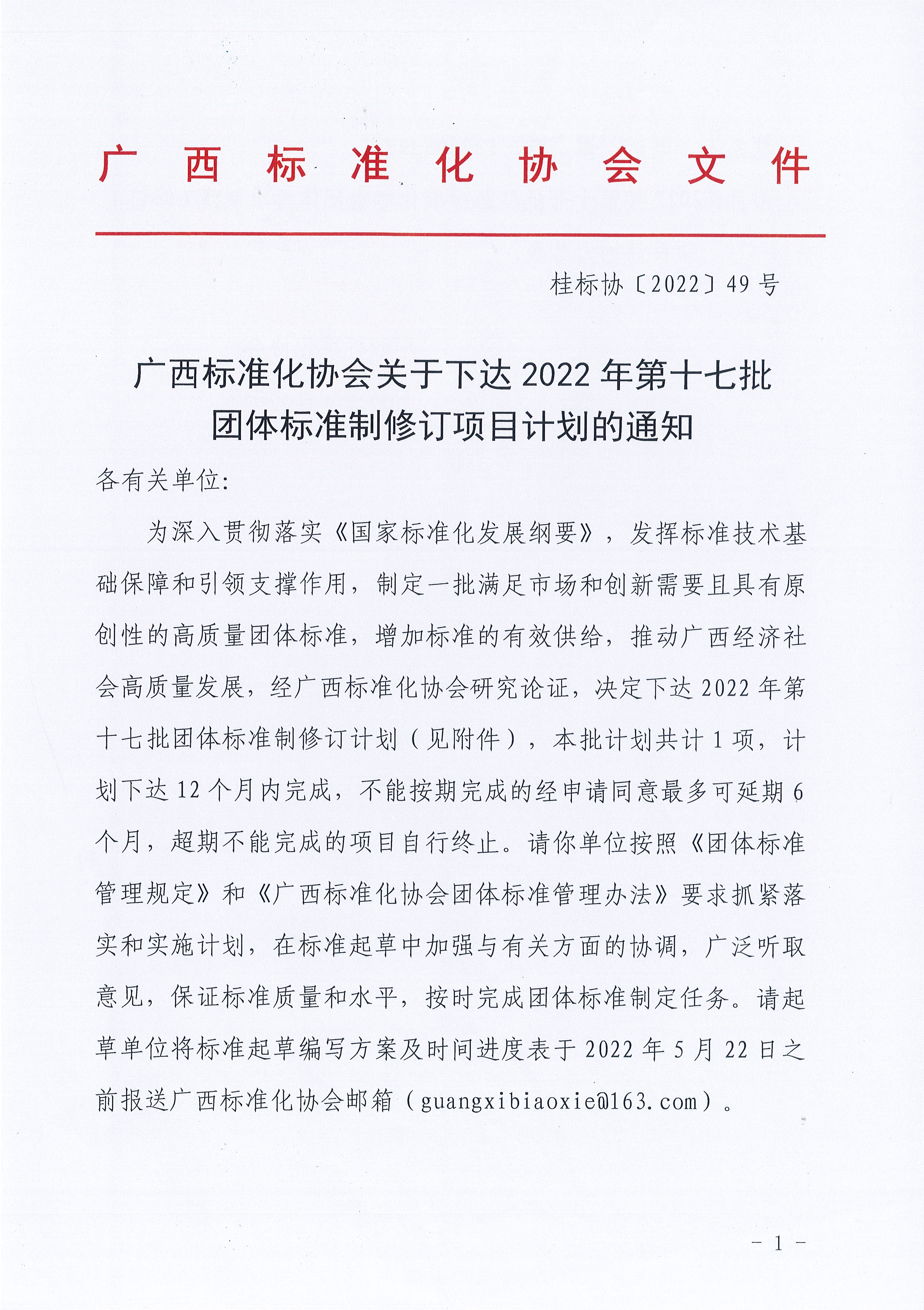 广西标准化协会关于下达2022年第十七批团体标准制修订项目计划的通知