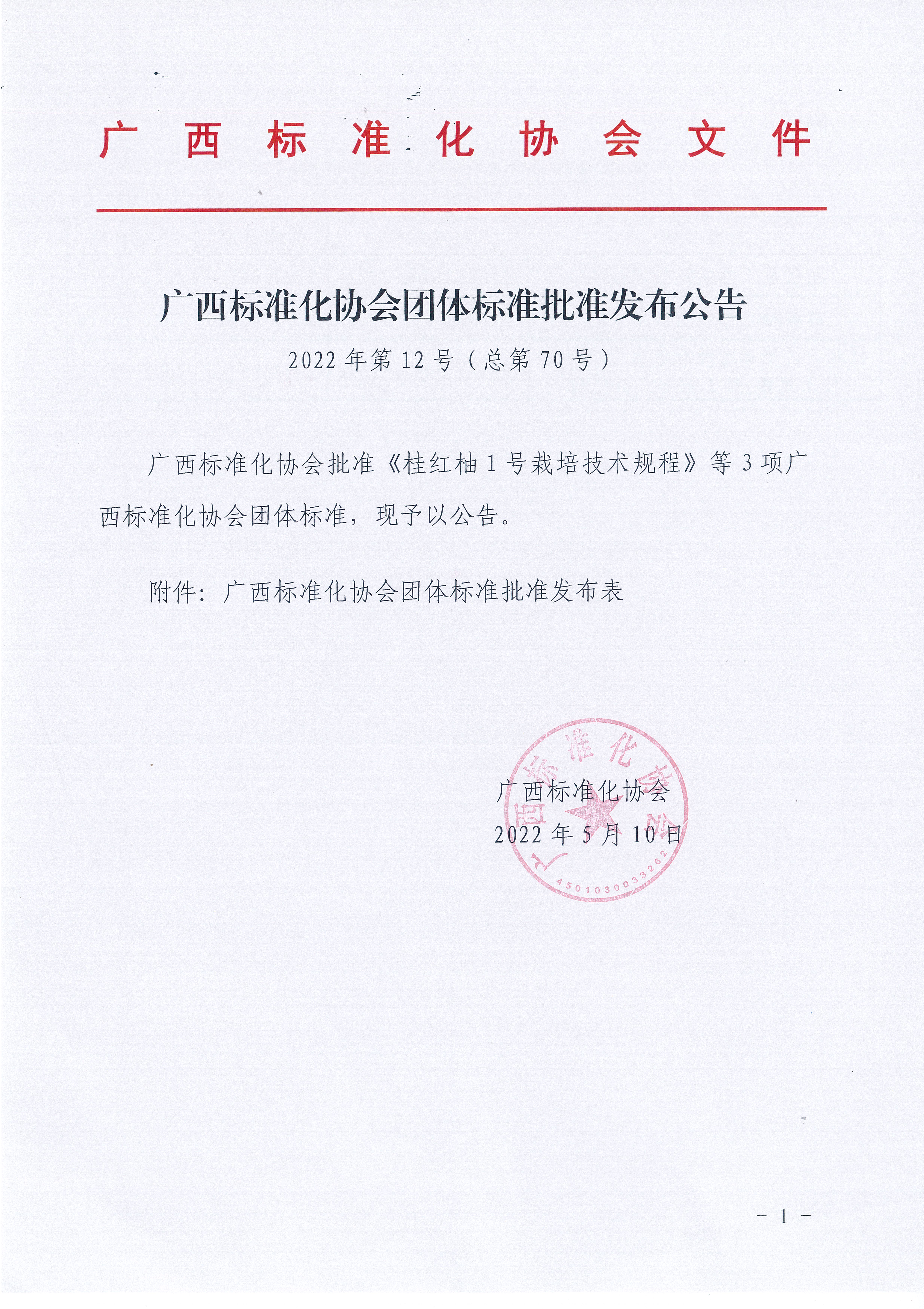 广西标准化协会团体标准批准发布公告《2022年第12号(总第70号)》
