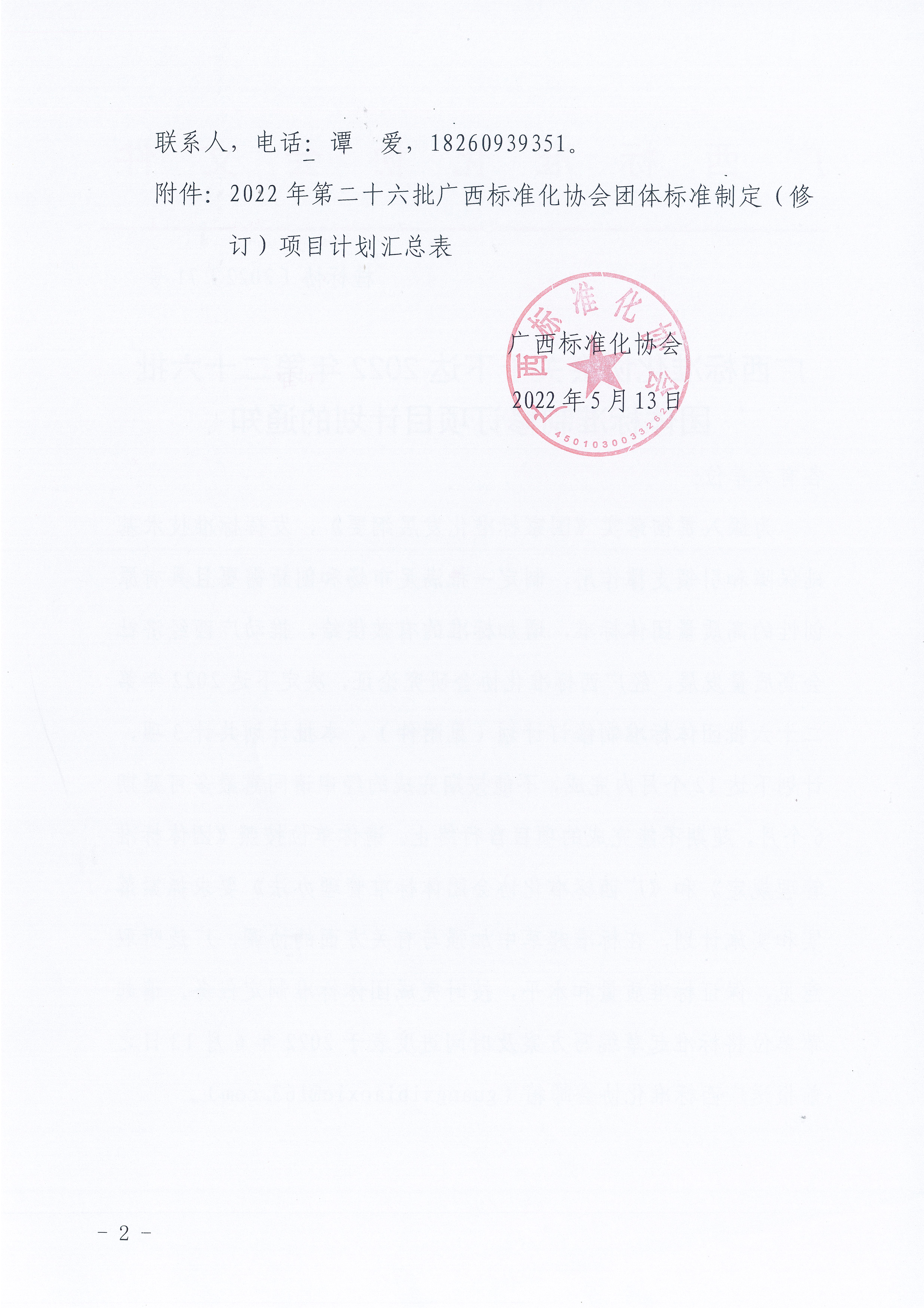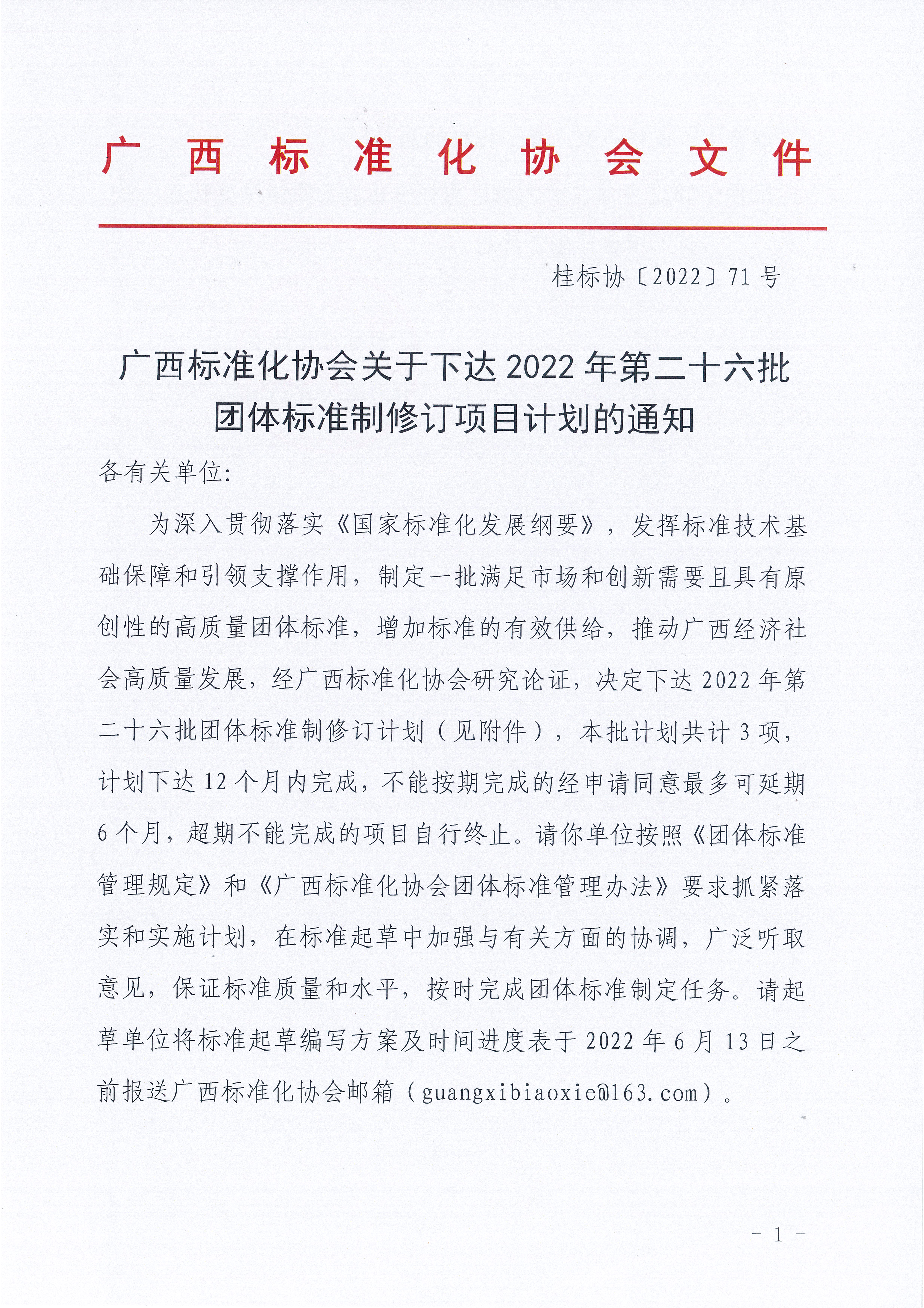 广西标准化协会关于下达2022年第二十六批团体标准制修订项目计划的通知