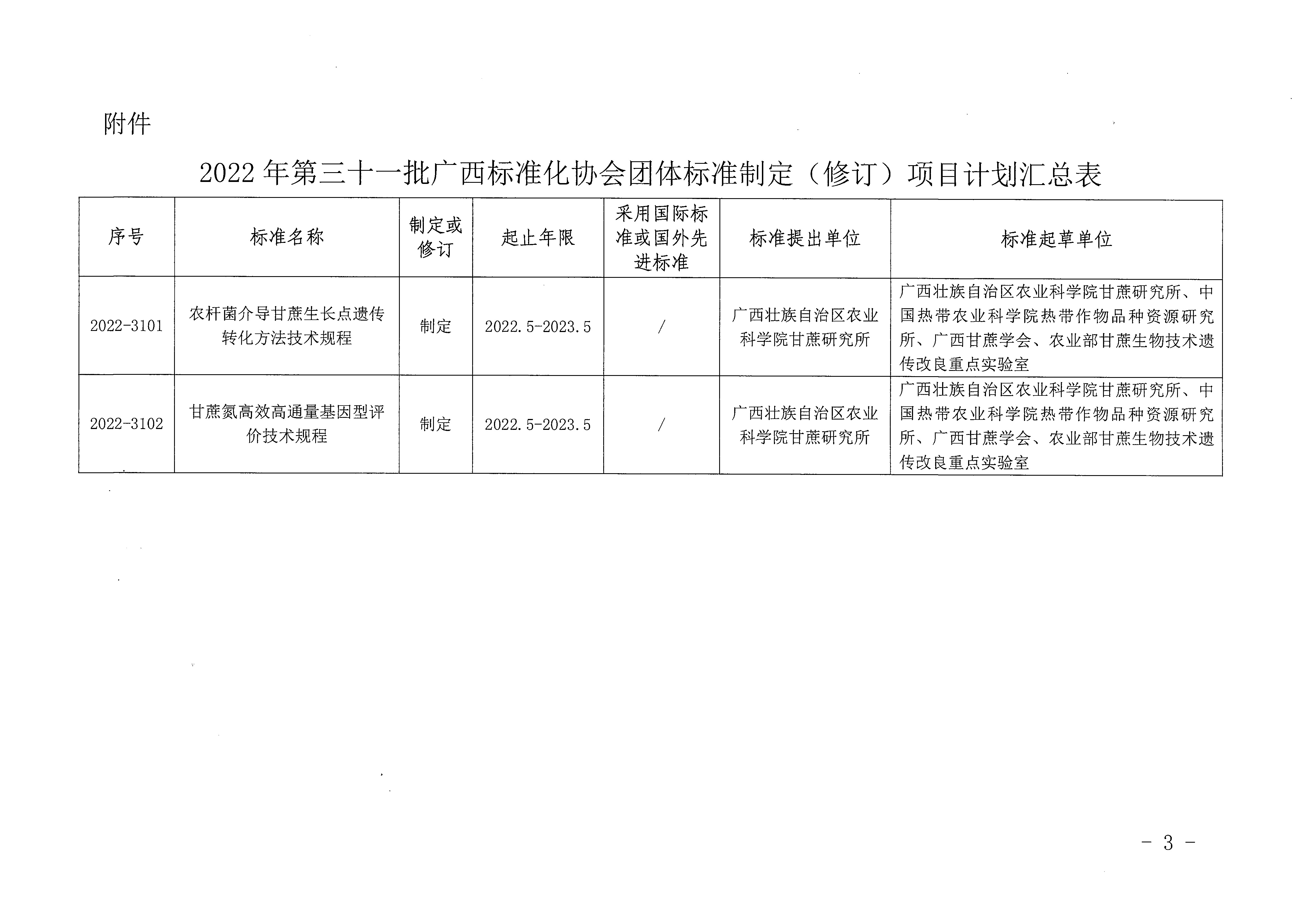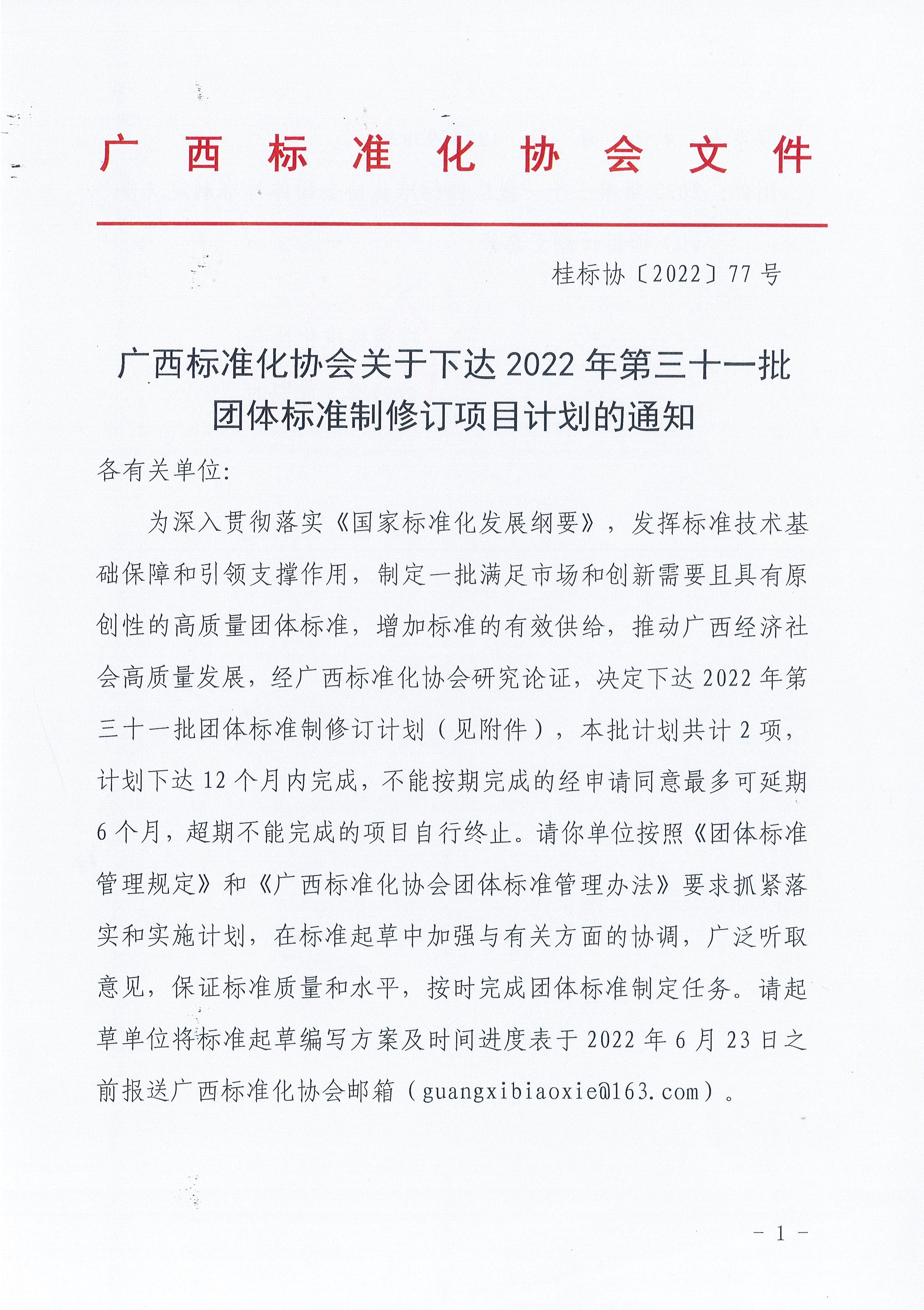 广西标准化协会关于下达2022年第三十一批团体标准制修订项目计划的通知